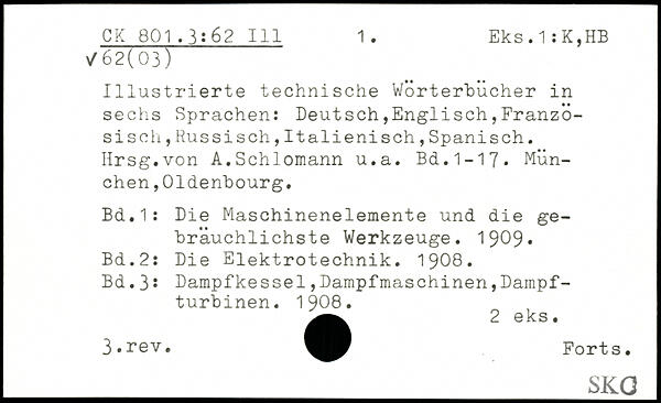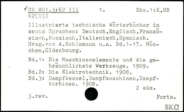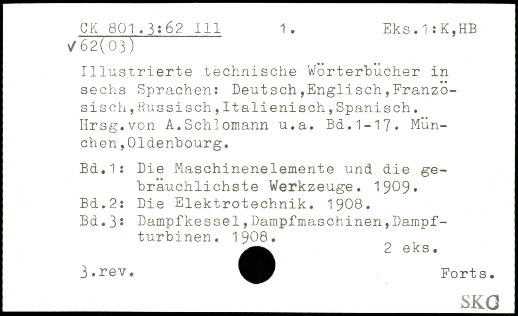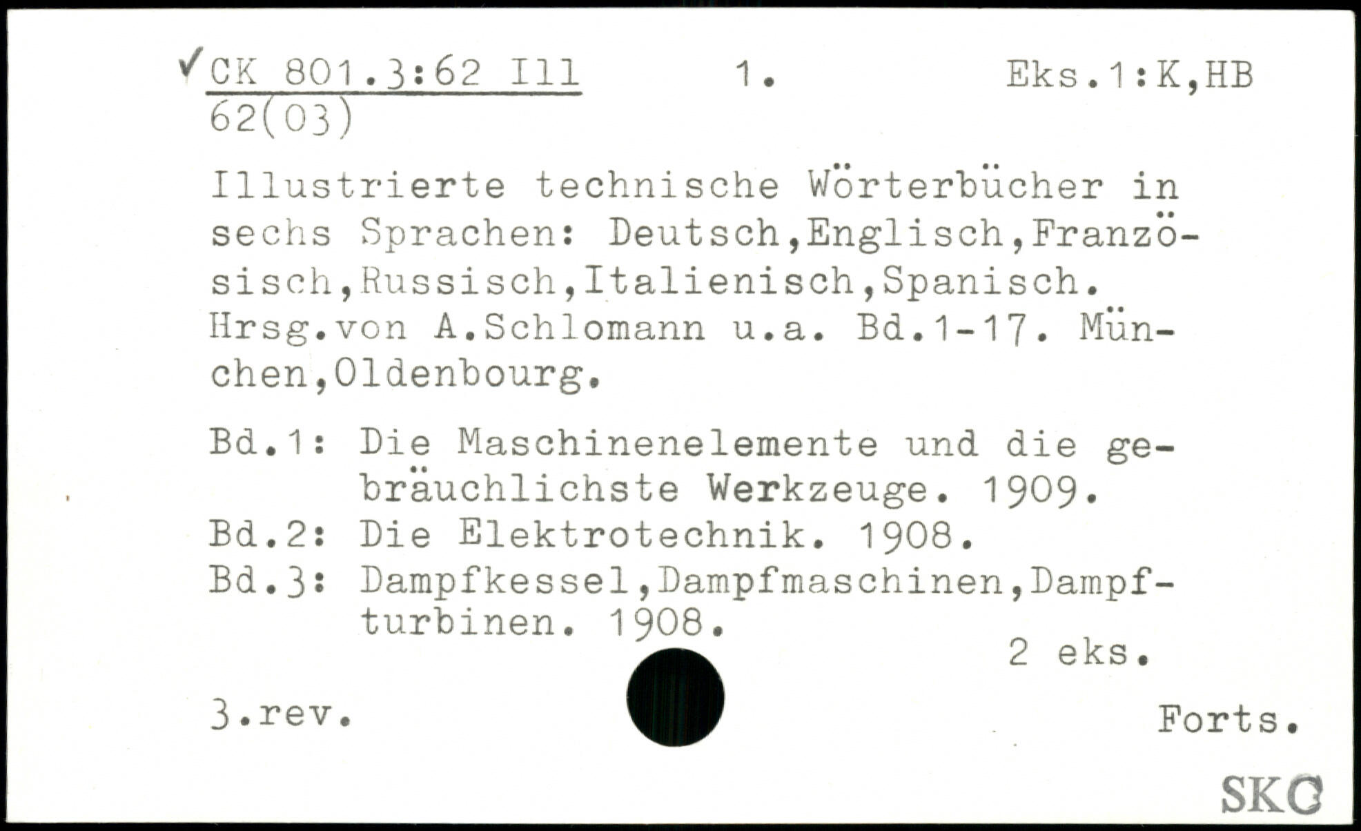 Illustrierte technische Wörterbücher in sechs Sprachen: Deut sch,Englisch,Französisch, Russisch, Italienisch, Spanisch. Hrsg.von A.Schlomann u.a.