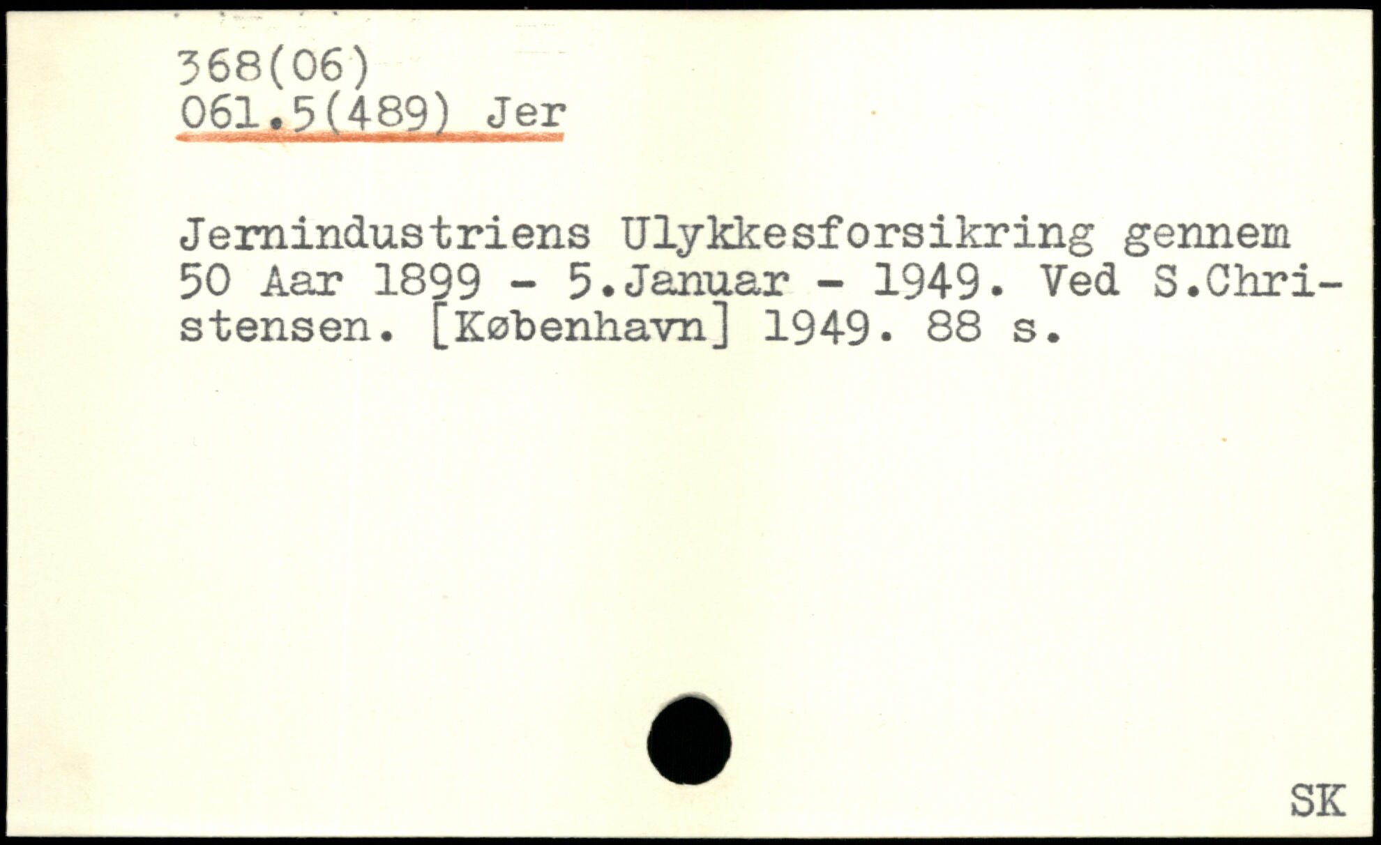 Jernindustriens Ulykkesforsikring gennem 50 Aar 1899 - 5.Januar - 1949. Ved S.Christensen.