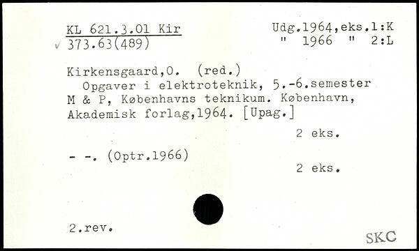 Opgaver i elektroteknik, 5.-6.semester M & P, Københavns teknikum.