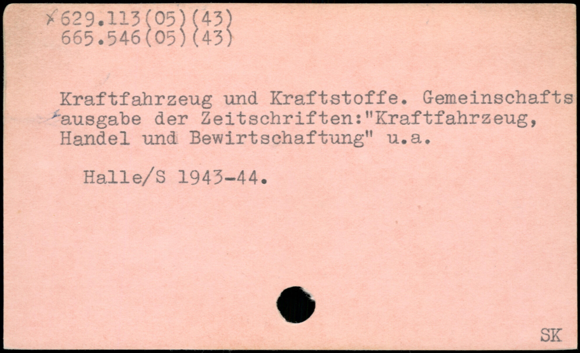 Kraftfahrzeug und Kraftstoffe, Gemeinschafts ausgabe der Zeitschriften: ”Kraftfahrzeug, Handel und Bewirtschaftung" u.a. Halle/S 1943-44.
