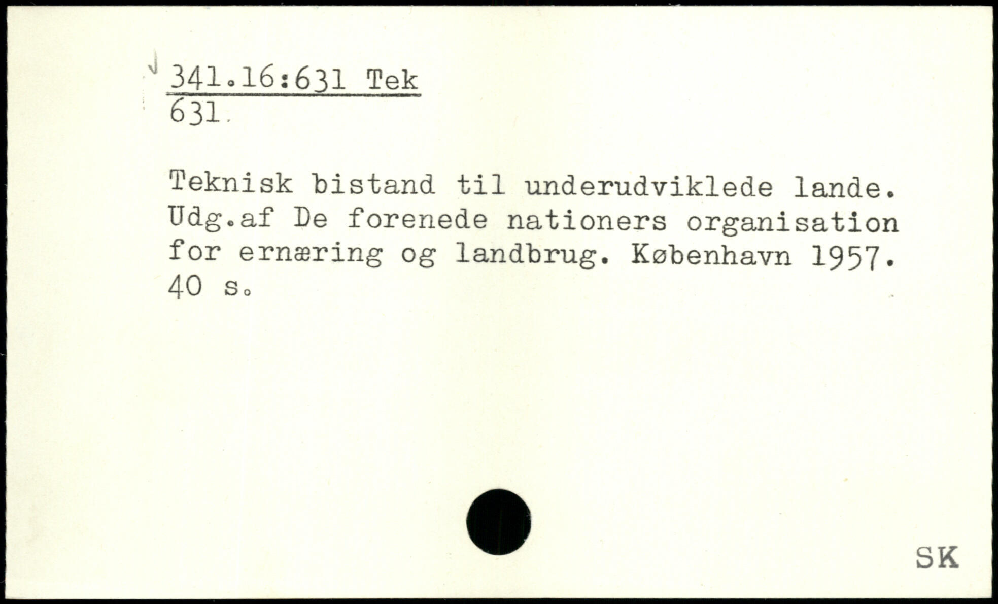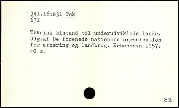 Teknisk bistand til underudviklede lande. Udg.af De forenede nationers organisation for ernæring og landbrug.