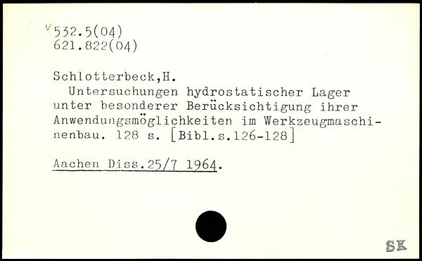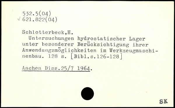 Untersuchungen hydrostatischer Lager unter besonderer Berücksichtigung ihrer Anwendungsmöglichkeiten im Werkzeugmaschinenbau.