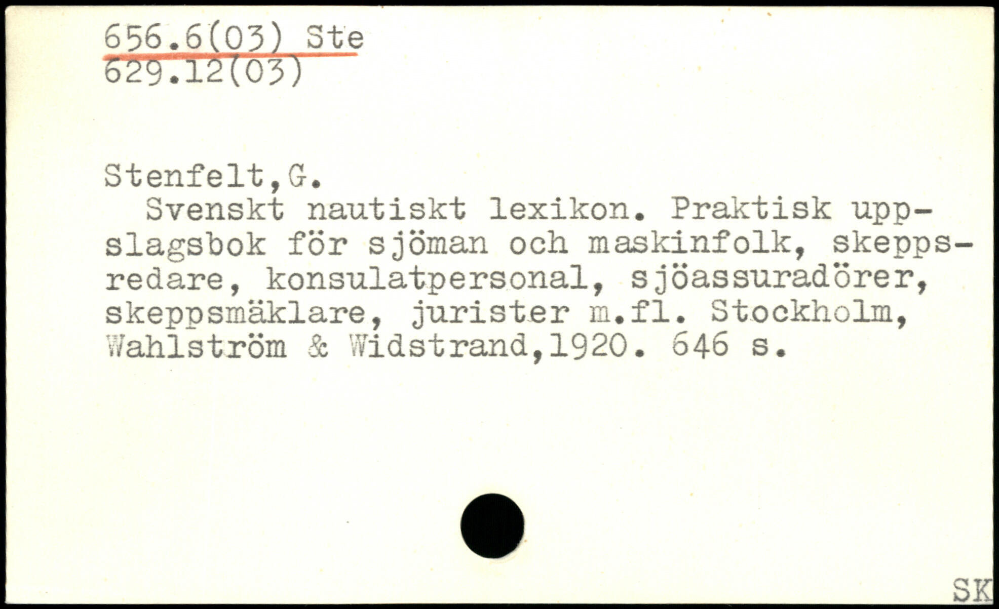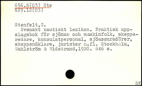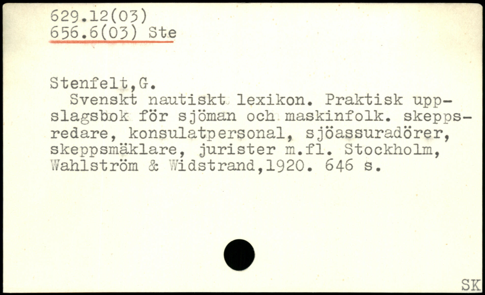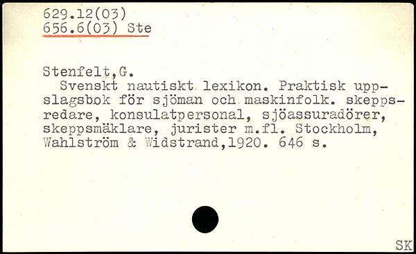Svenskt nautiskt lexikon. Praktisk uppslagsbok för sjöman och maskinfolk, skeppsredare, konsulatpersonal, sjöassuradörer, skeppsmäklare, jurister m.fl.