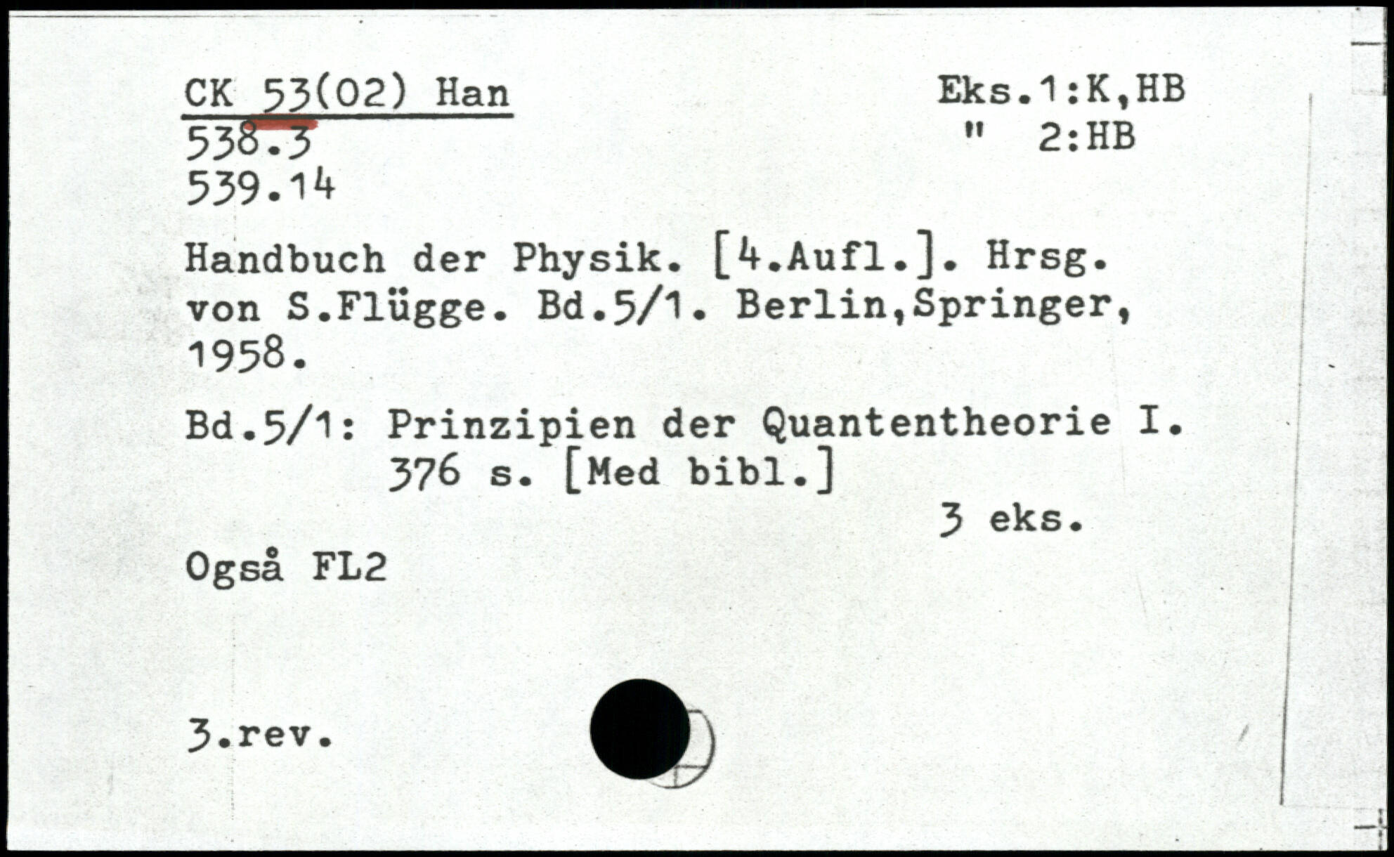 TboTT " 2: HB 539.^ Handbuch der Physik. [^.Aufl.]. Hrsg, von S.Flügge.