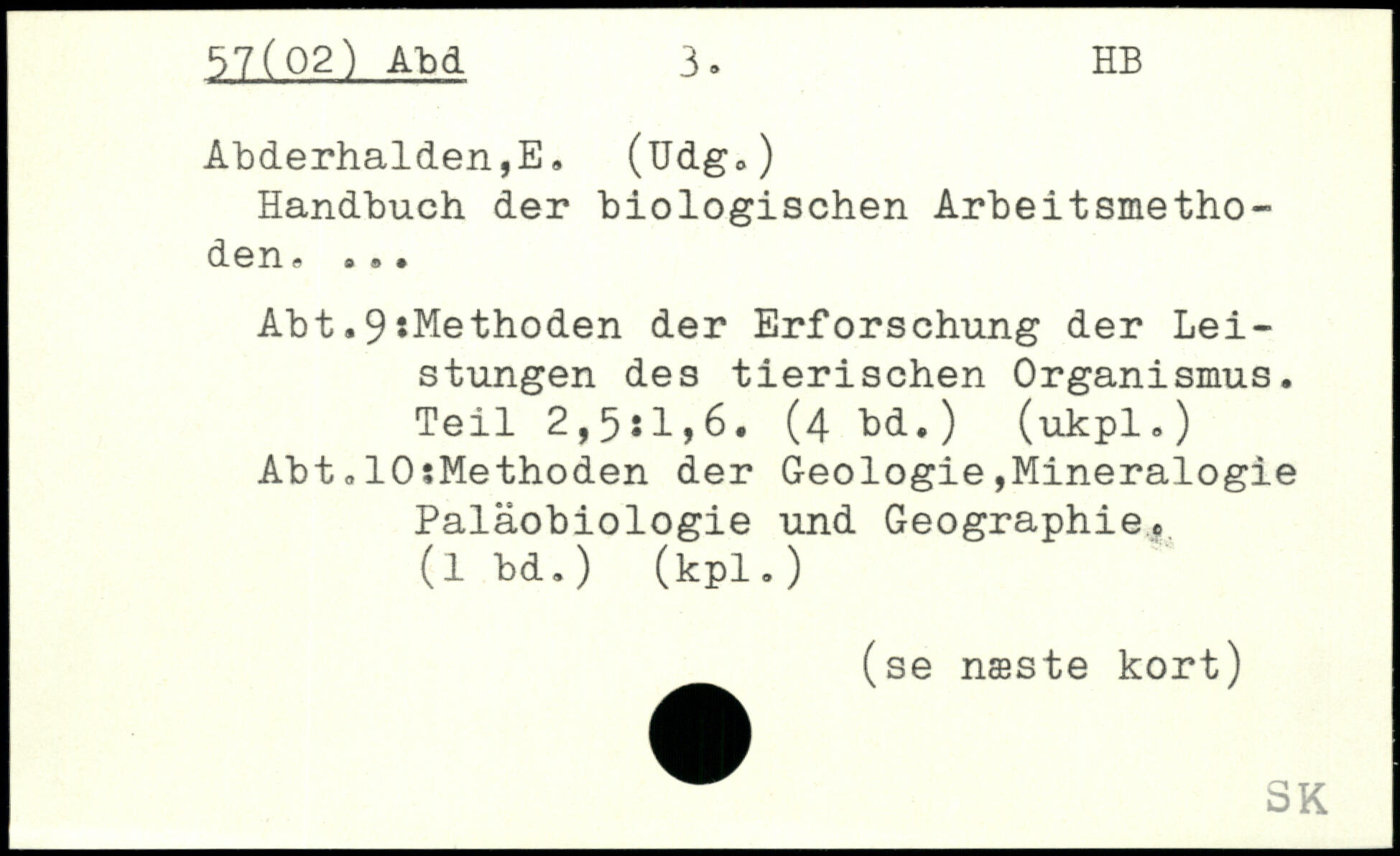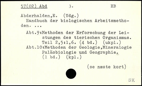 Abderhalden,E. (üdg.) Handbuch der biologischen Arbeitsmethoden e äs, Abt.9sMethoden der Erforschung der Leistungen des tierischen Organismus. Teil 2,5:1,6. (4 bd.) (ukpl.) Abto10sMethoden der Geologie,Mineralogie Paläobiologie und Geographie,. (l bd.) (kpl.)