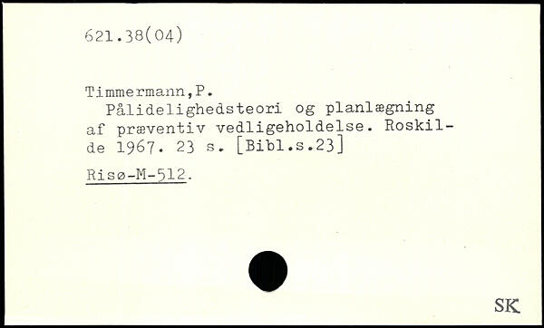 Pålidelighedsteori og planlægning af præventiv vedligeholdelse. Roskilde 1967.