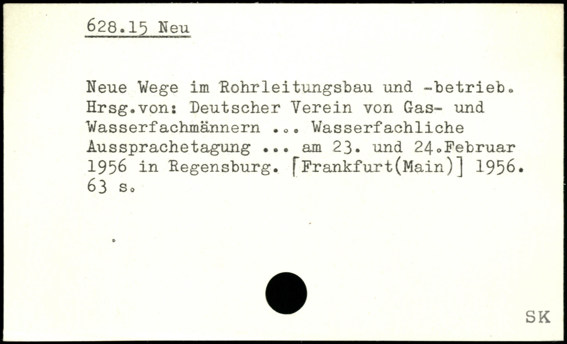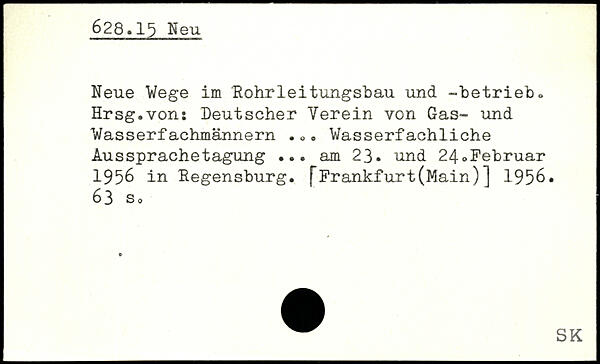 Neue Wege im Rohrleitungsbau und -betrieb. Hrsg.von: Deutscher Verein von Gas- und Wasserfachmännern ... Wasserfachliche Aussprächetagung ... am 23. und 24.Februar 1956 in Regensburg, fFrankfurt(Main)] 1956.