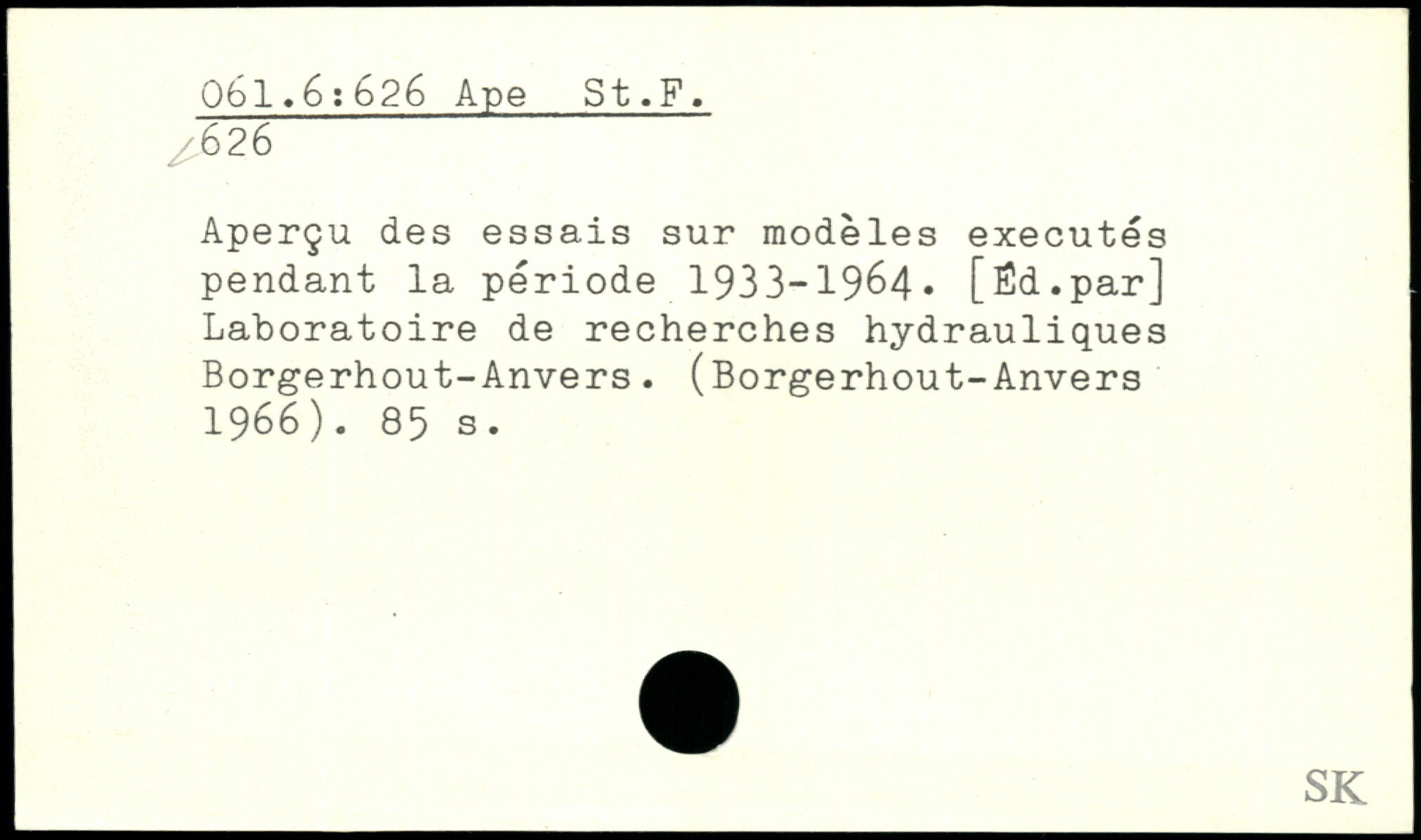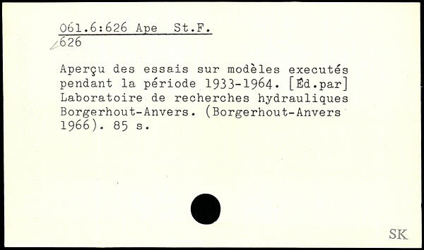 Aperçu des essais sur modèles exécutés pendant la période 1933-1964, [fîd.par] Laboratoire de recherches hydrauliques Borgerhout-Anvers. (Borgerhout-Anvers ■ 1966).