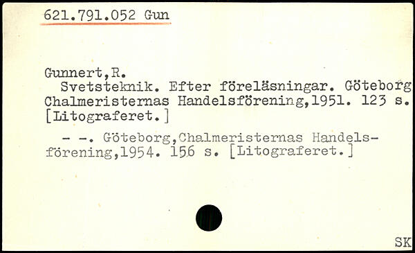 Svetsteknik, Efter föreläsningar, Göteborg Chalmeristemas Handelsförening,1951. 123 s, [Litograferet,] - Göteborg,Chalmeristemas Handels forening, 195 4. 15J6 s. [Litograferet. ]