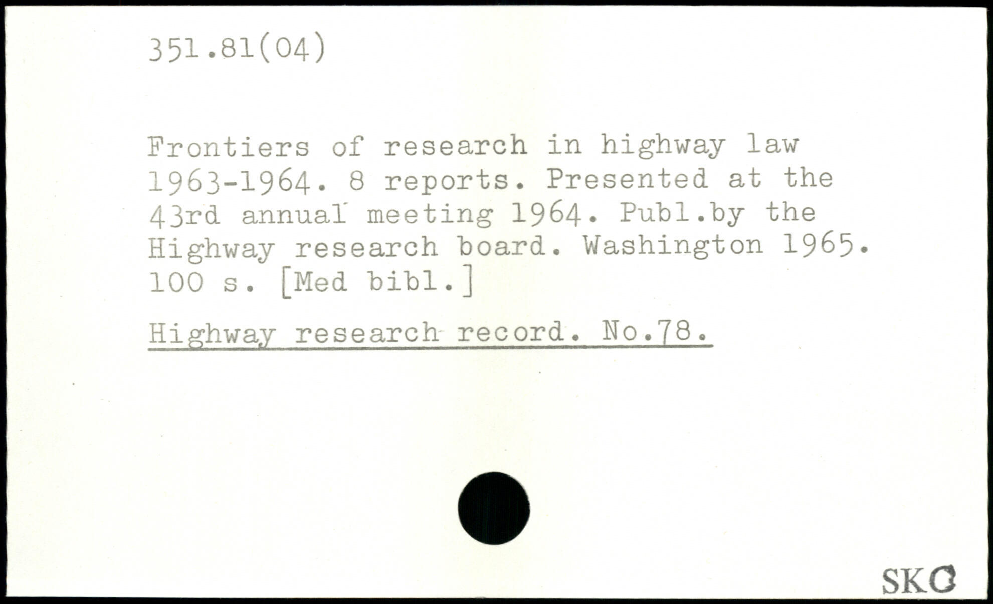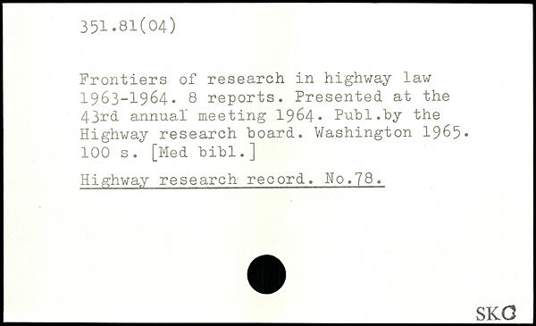 Frontiers of research in highway law 1963-1964. 8 reports. Presented at the 43nd annual' meeting 1964, Pub 1.by the Highway research hoard.