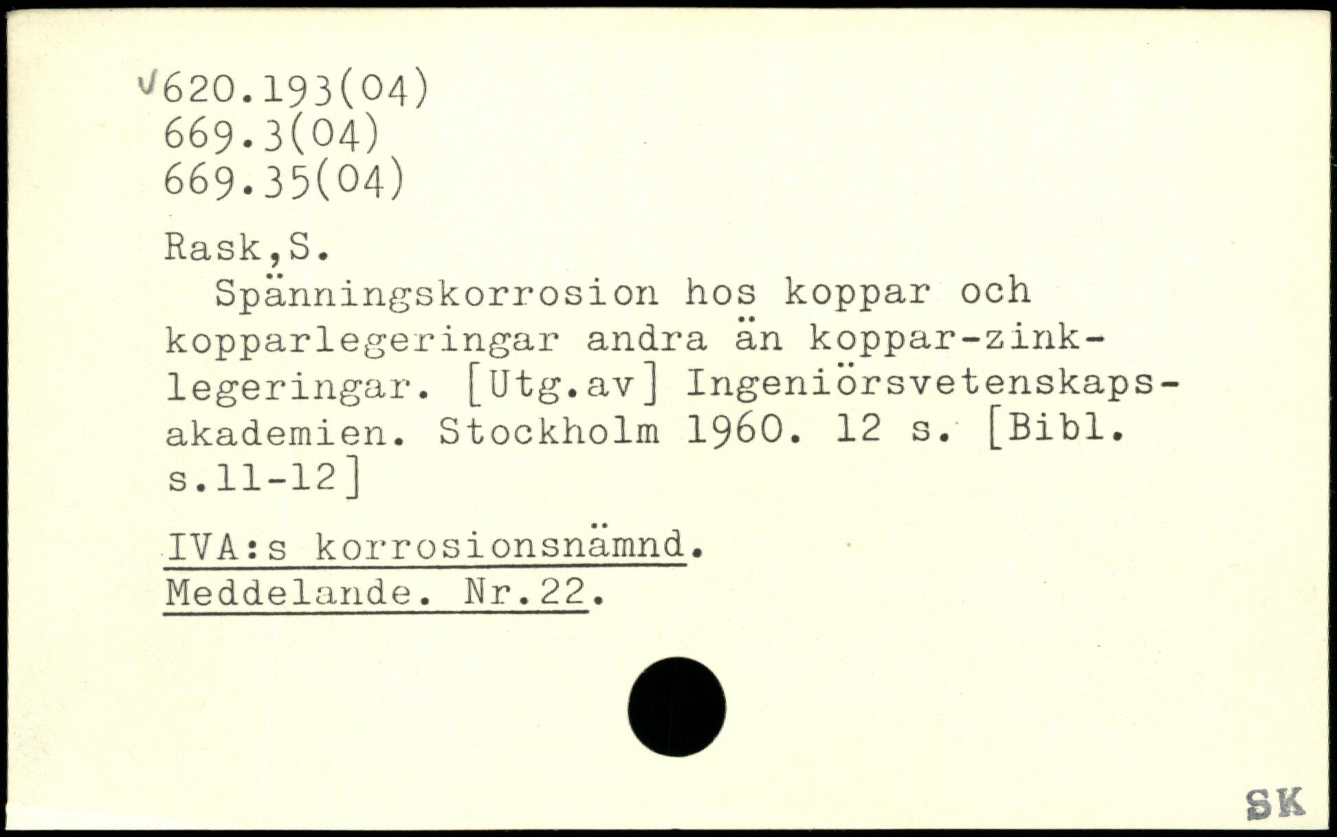 Spanningskorrosion hos koppar och kopparlegeringar andra an koppar-zink-legeringar. [Utg.av] Ingeniörsvetenskaps-akademien.