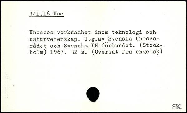 Unescos verksamhet inom teknologi och naturvetenskap. Utg.av Svenska Unesco-rådet och Svenska FN-förbundet. (Stockholm) 1967.