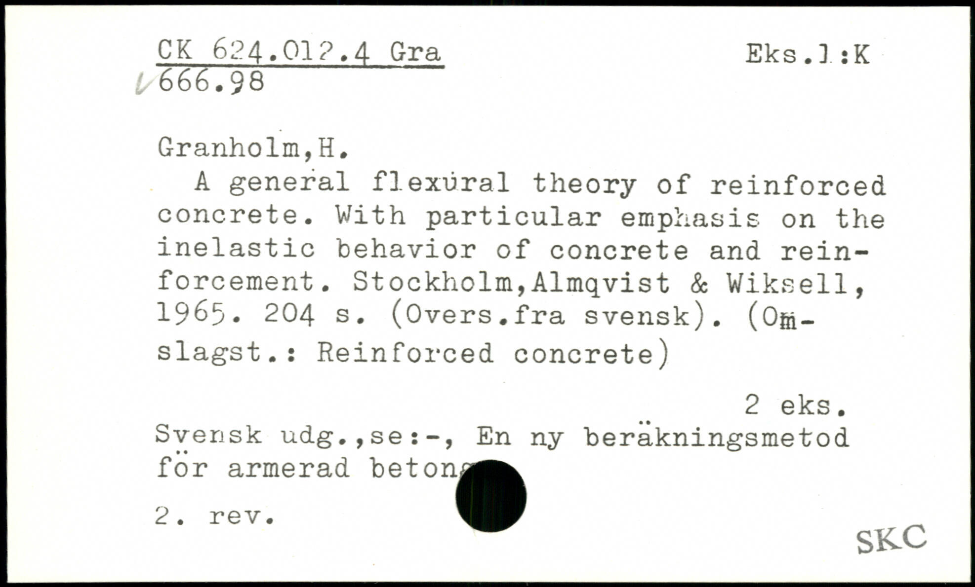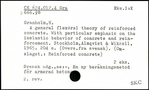 A general flexural theory of reinforced concrete. With particular emphasis on the inelastic behavior of concrete and reinforcement.