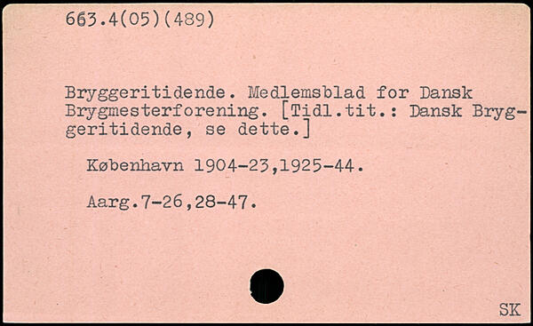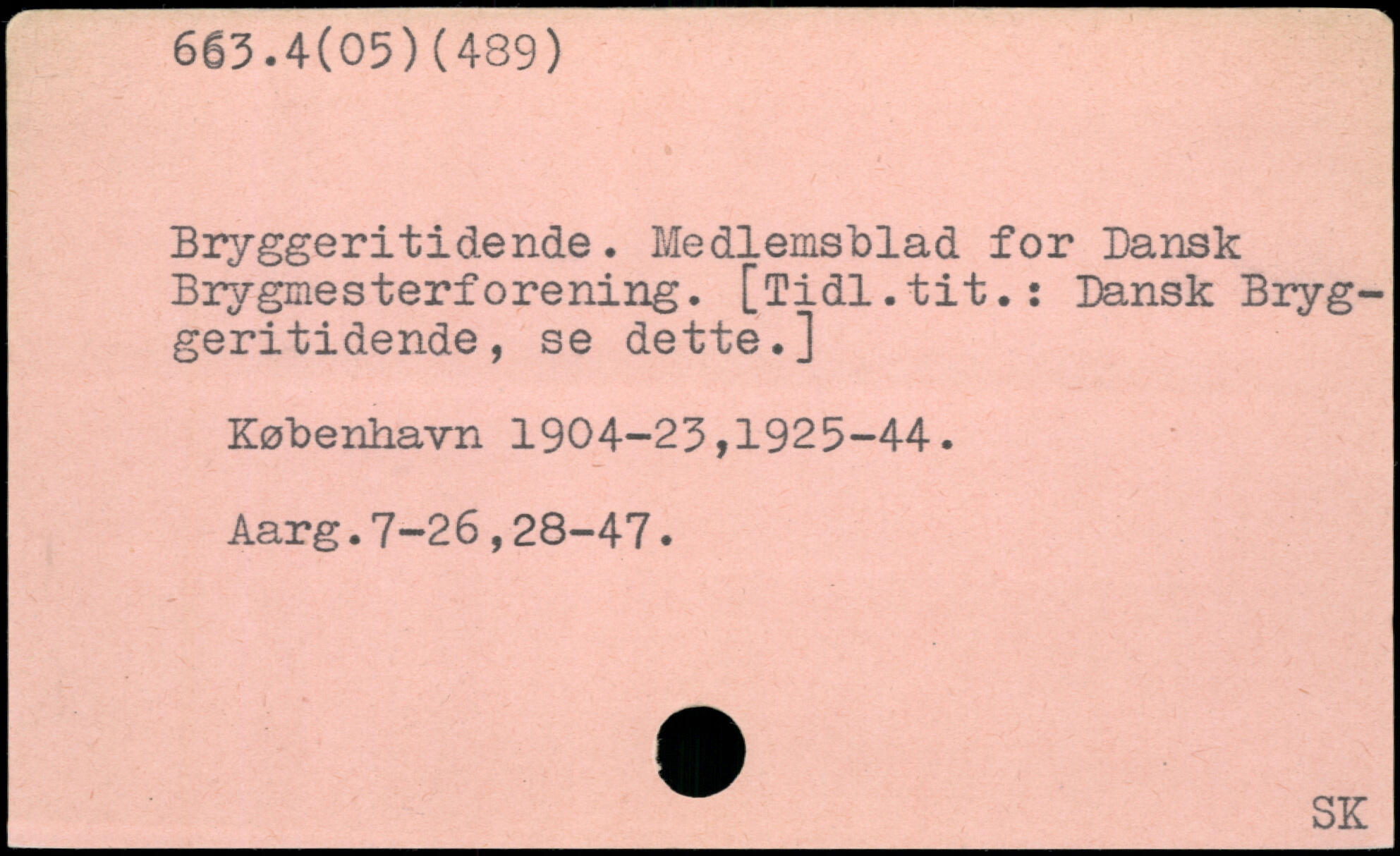 Bryggeritidende. Medlemsblad for Dansk Brygmesterforening. [Tidl.tit.s Dansk Bryggeritidende, se dette.]