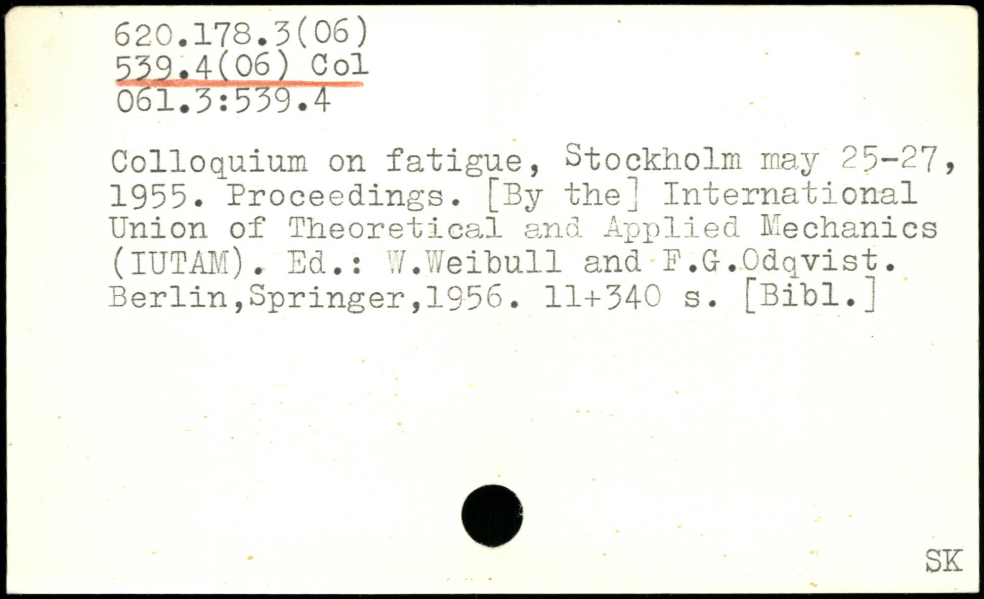 Colloquium on fatigue, Stockholm may 25-27, 1955. Proceedings. [By the] International Union of Theoretical and Applied Mechanics (IUTAM). Ed.: W.Weibull and P.G.Odqvist.