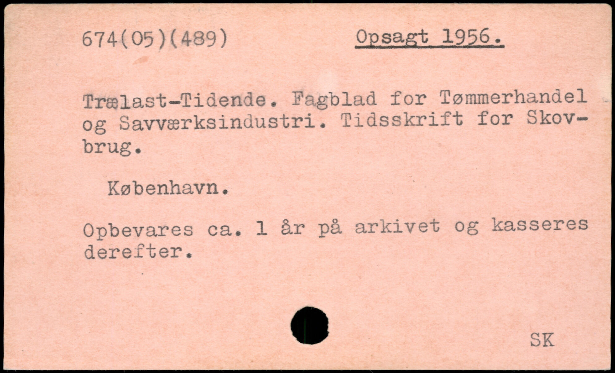 Trælast-Tidende. Fagblad for Tømmerhandel og Savværksindustri. Tidsskrift for Skovbrug. København. Opbevares ca. 1 år på. arkivet og kasseres derefter. W SK