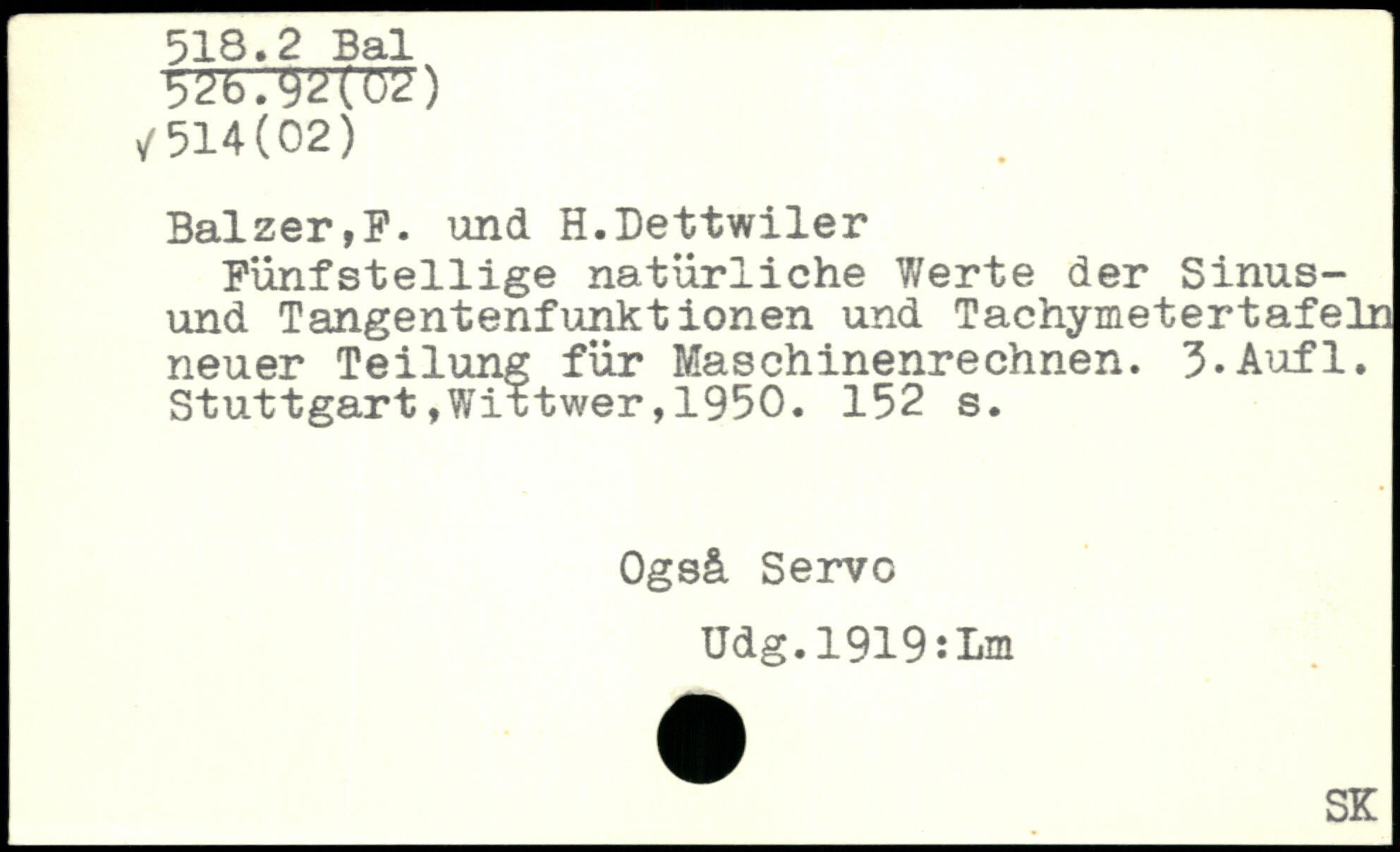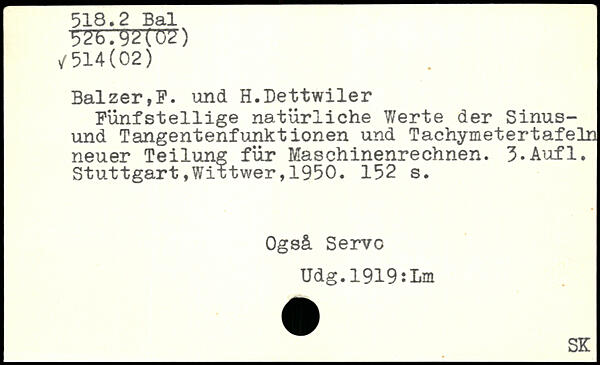 Fünfstellige natürliche V/erte der Sinus-und Tangentenfunktionen und Tachymetertafeln neuer Teilung für Maschinenrechnen. Ü.Aufl.