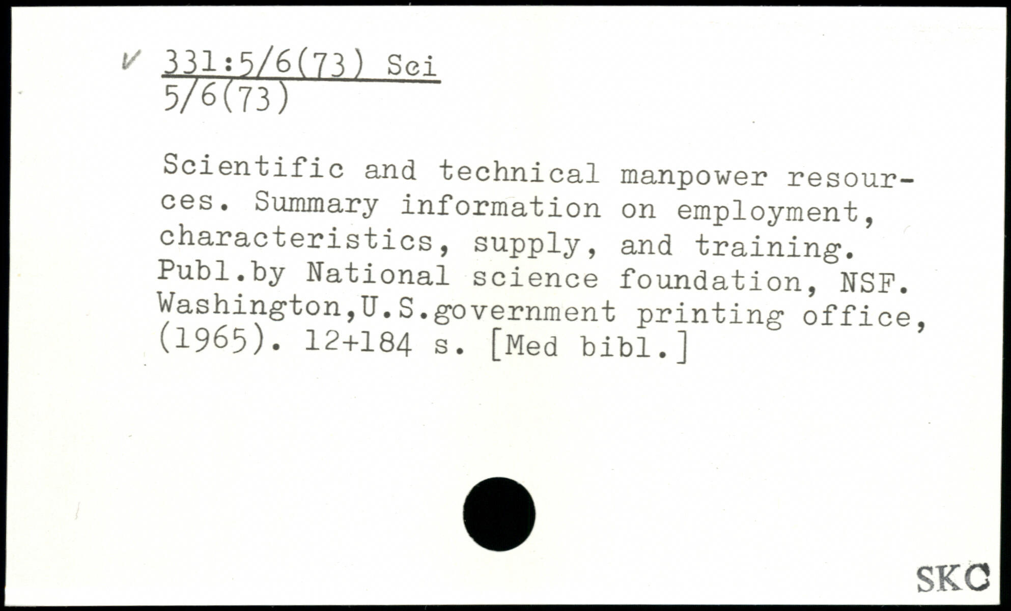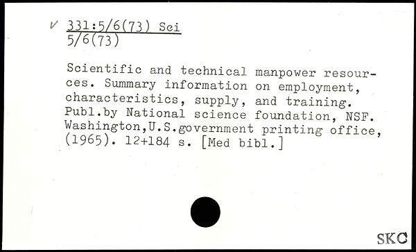 Scientific and technical manpower resour-ces. Summary information on employment, characteristics, supply, and training.