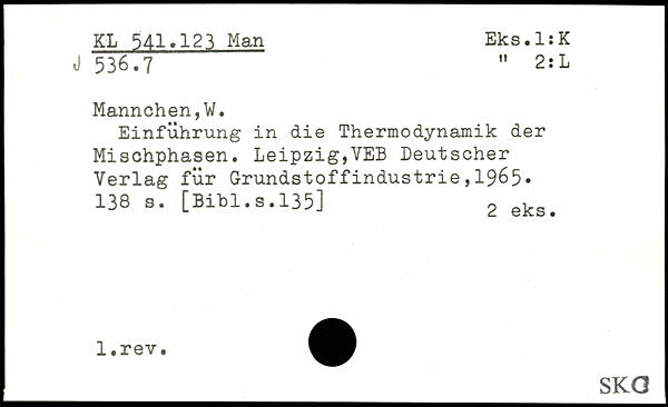 Einführung in die Thermodynamik der Mischphasen. Leipzig,VEB Deutscher Verlag für Grundstoffindustrie,1965.