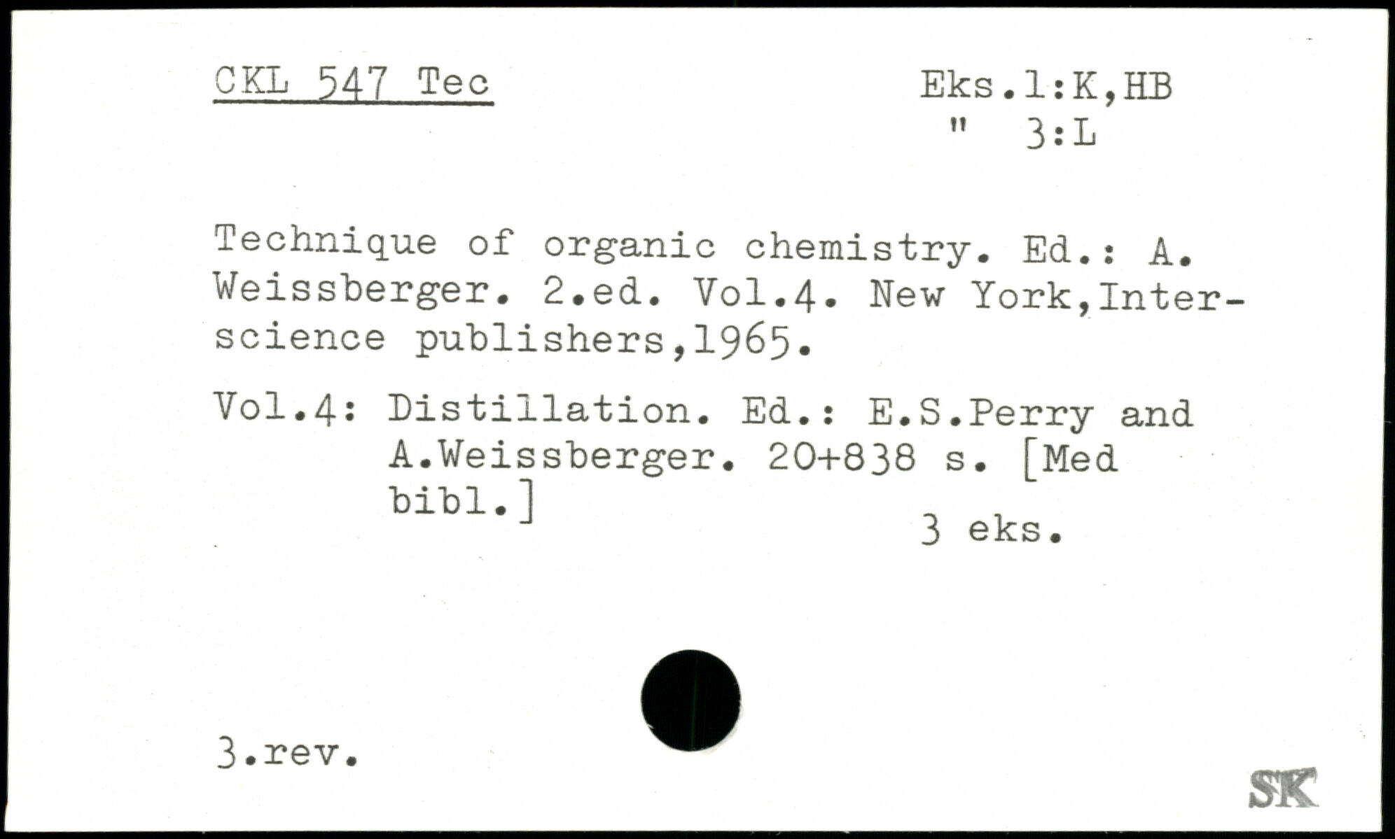 Technique of organic chemistry. Ed. : A. Weissberger.