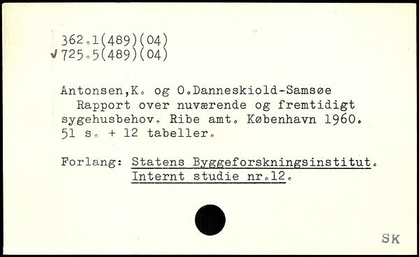 Antonsen,Ko og 0,Danneskiold-Samsøe Rapport over nuværende og fremtidigt sygehus'behov<, Ribe amt