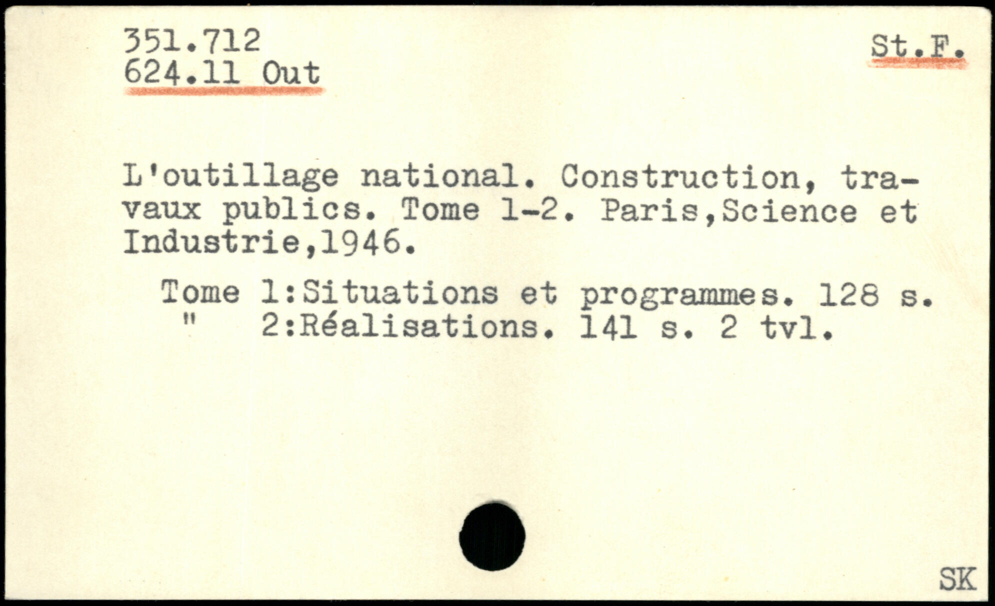 L’outillage national. Construction, travaux publics. Tome 1-2.