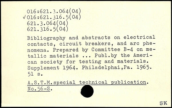 Bibliography and abstracts on electrical contacts, circuit breakers, and arc phenomena. Prepared by Committee B-4 on metallic materials ...