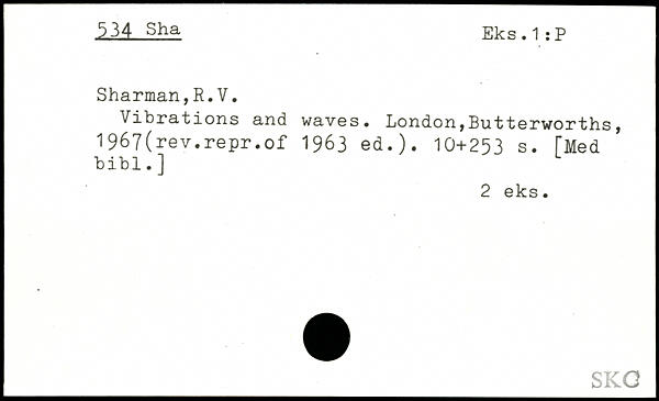Vibrations and waves, London,Butterworths, 1967(rev.repr.of 1963 ed.). 10+253 s. fMed bibl.]