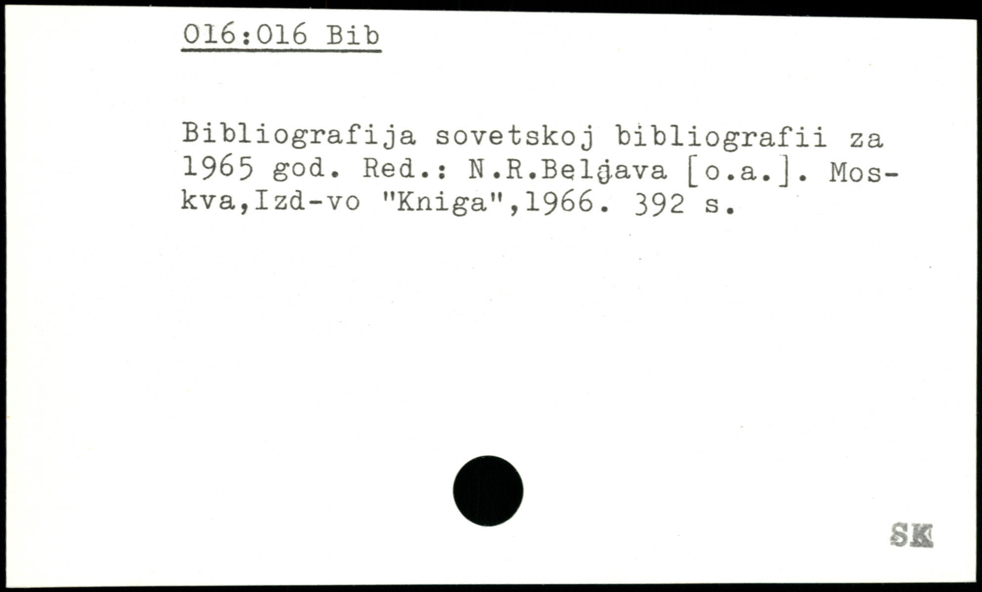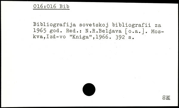 Bibliografija sovetskoj bibliografii za 1965 god. Red.: N.R.Belgava [o.a.J. Mos-kva,Izd-vo "Kniga",1966.