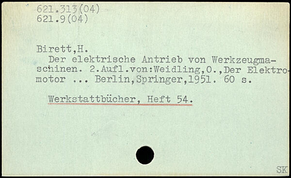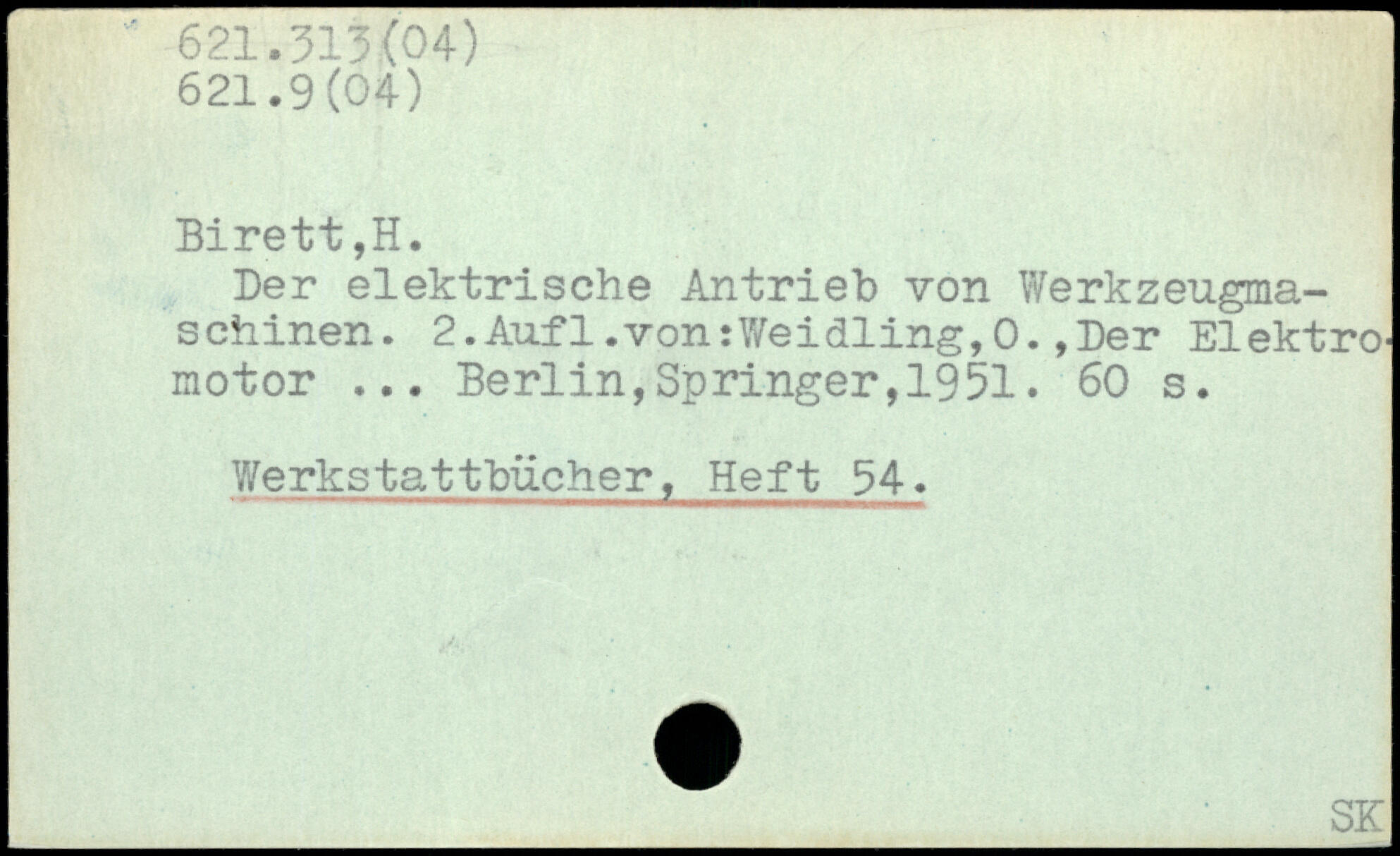 Der elektrische Antrieb von Werkzeugmaschinen. 2. Auf 1.von:Weidling,O.,Der Elektromotor ...