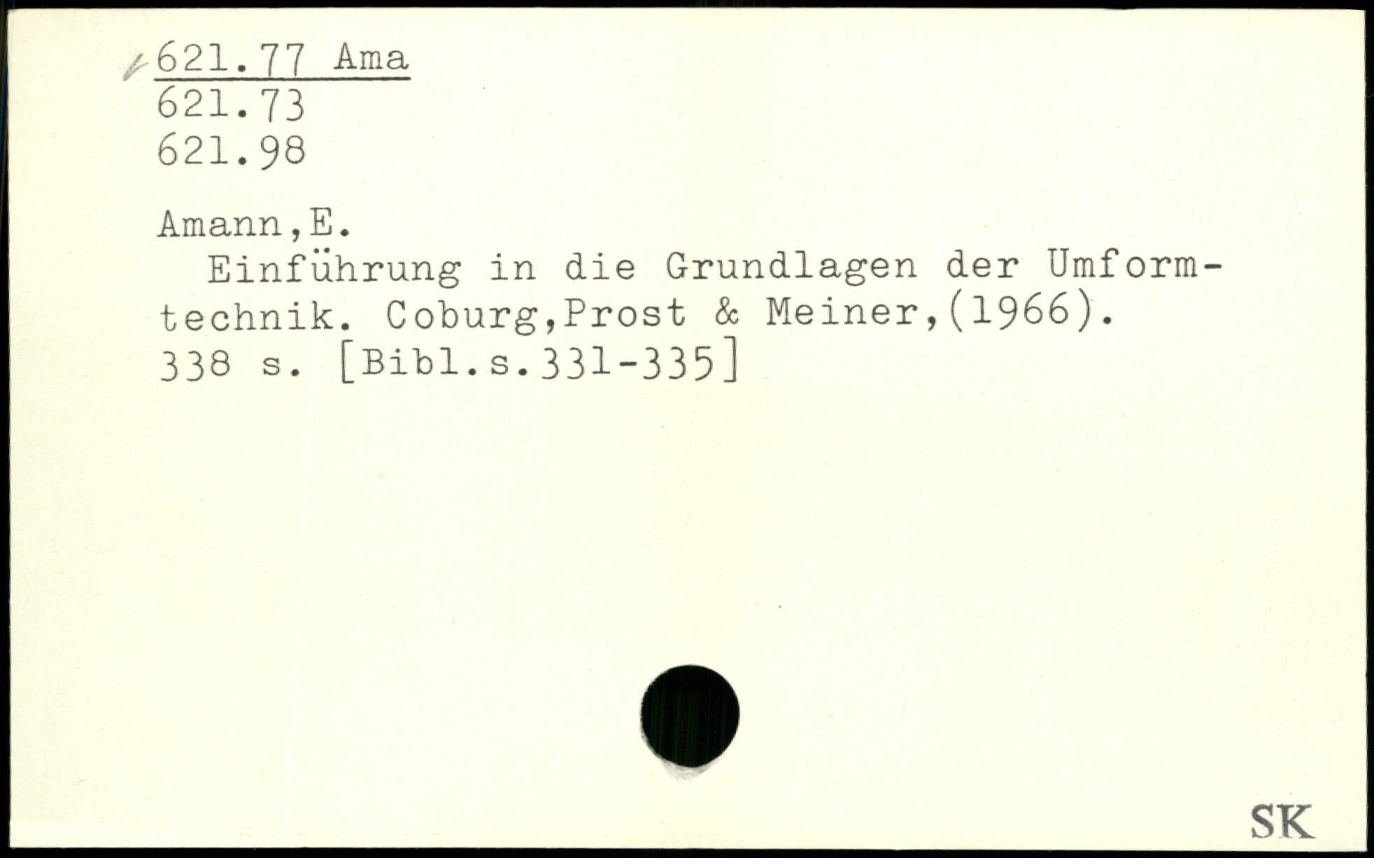 Einführung in die Grundlagen der Umformtechnik. Coburg,Prost & Meiner,(1966). 33s s.
