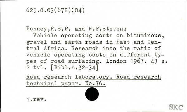 Vehicle operating costs on bituminous, gravel and earth roads in East and Central Africa. Research into the ratio of vehicle operating costs on different types of road surfacing.