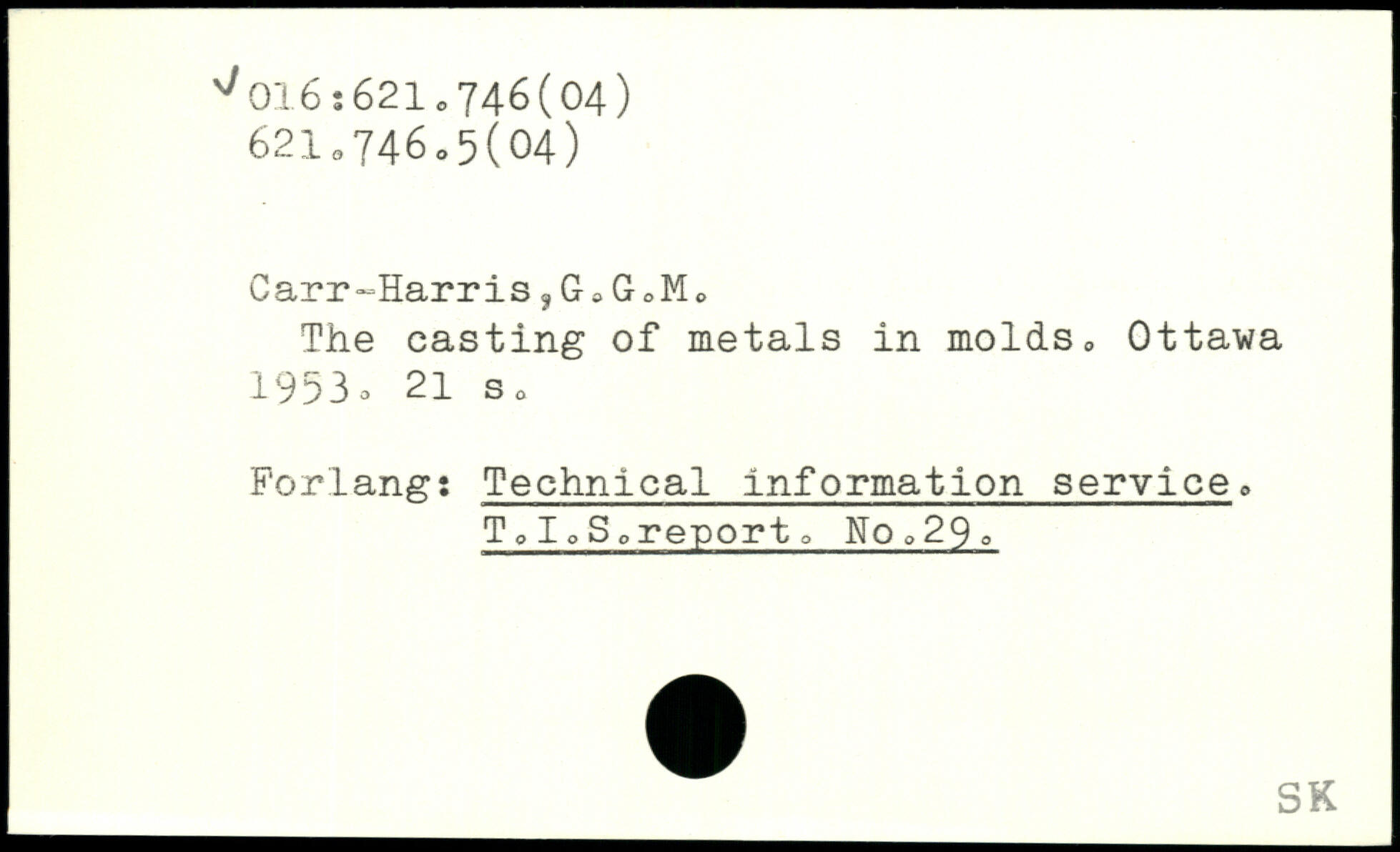 Carr-Harris,Ga G0M0 The casting of metals in molds.