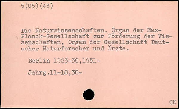 Die Naturwissenschaften. Organ der Max-Planck-Gesellschaft zur Förderung der Wissenschaften, Organ der Gesellschaft Deutscher Naturforscher und Ärzte.