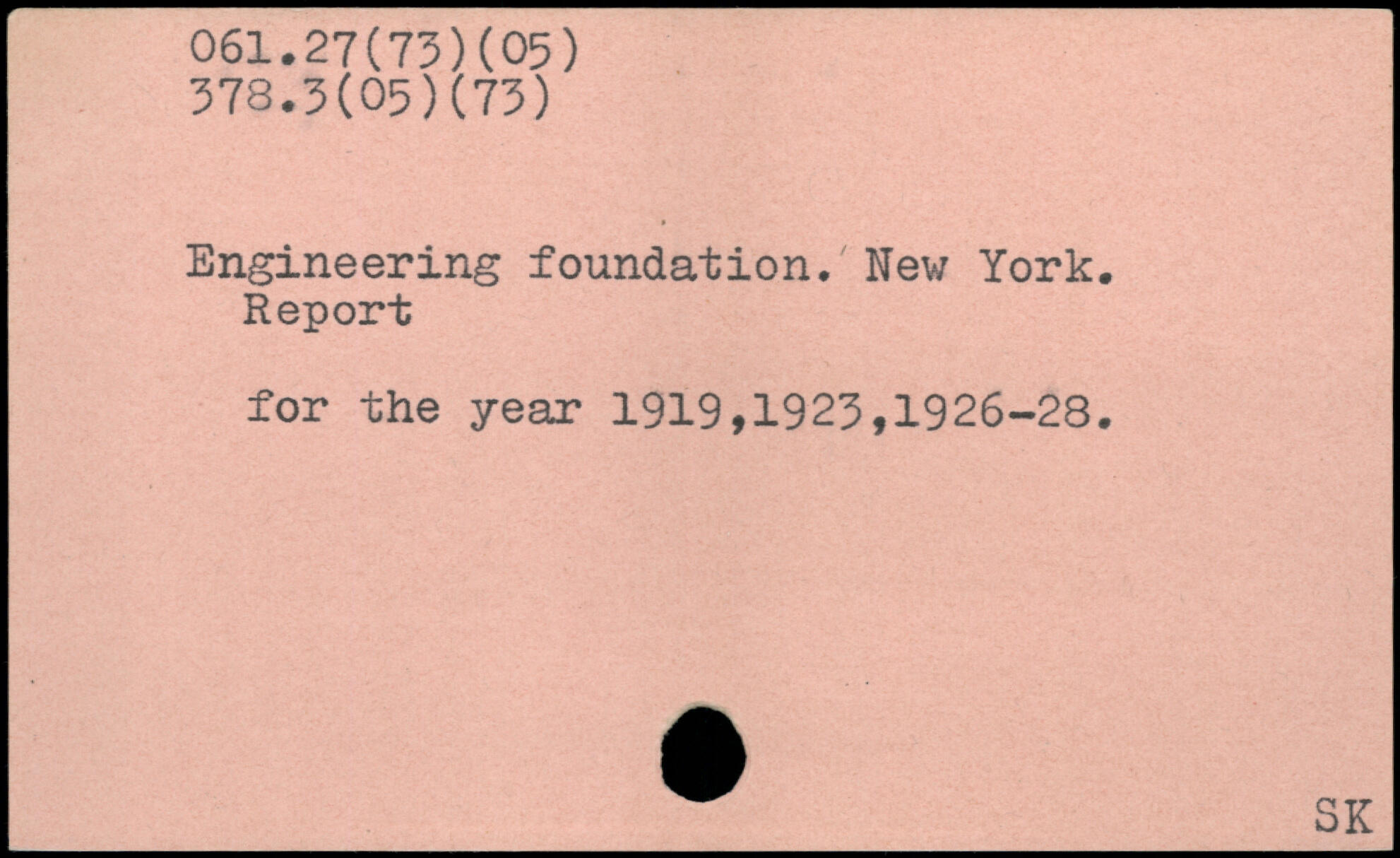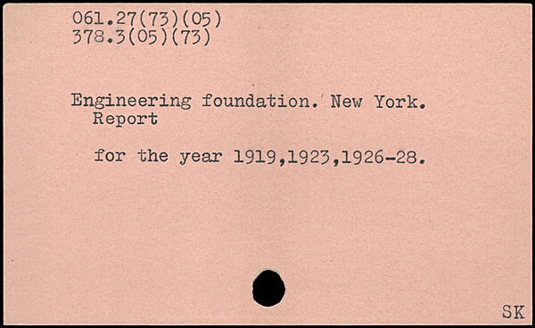 Engineering foundation. New York. Report for the year 1919, 1923,1926-28.
