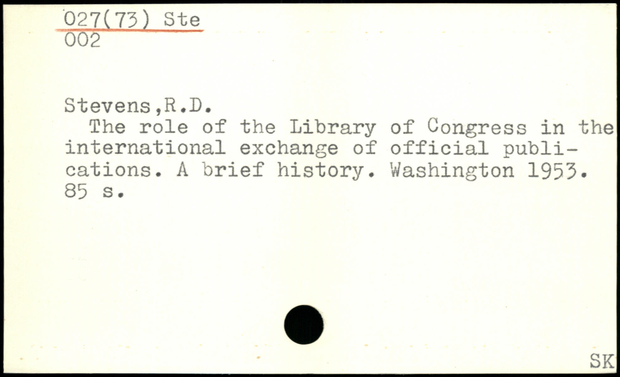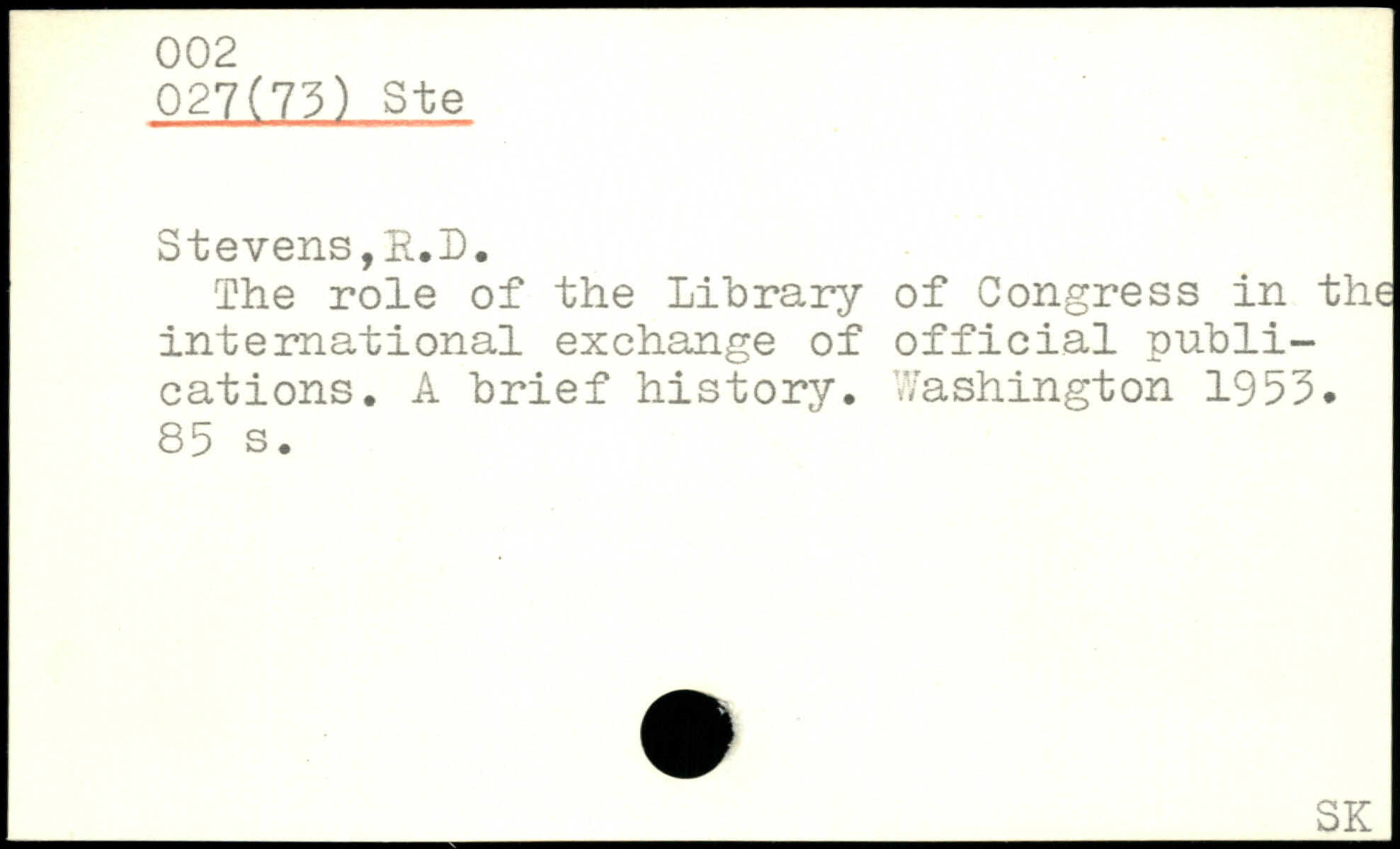 The role of the Library of Congress in the international exchange of official publications. A brief history.