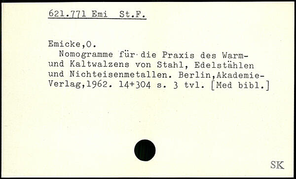 Nomogramme fiir- die Praxis des Warm-und Kaltwalzens von Stahl, Edelstahlen und Nichteisenmetallen.
