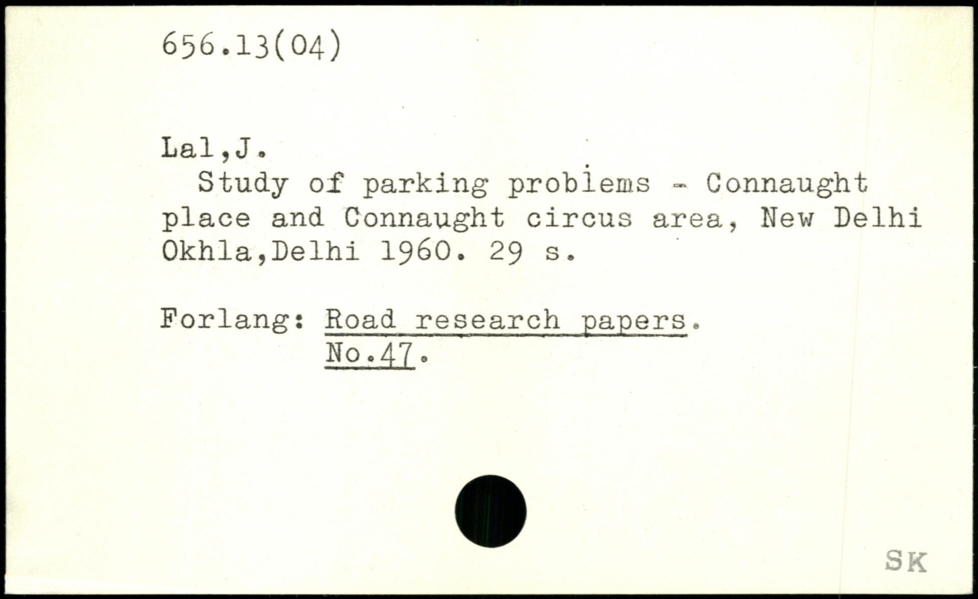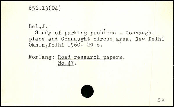 Study of parking problems - Connaught place and Connaught circus area, New Delhi Okhla,Delhi 1960.
