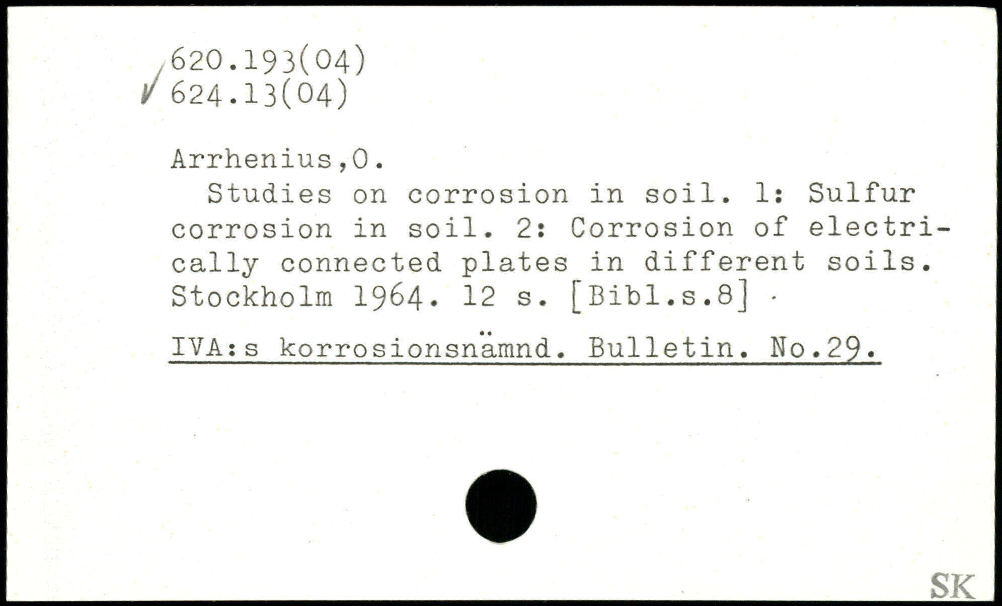 Studies on corrosion in soil. 1: Sulfur corrosion in soil. 2: Corrosion of electrically connected plates in different soils.