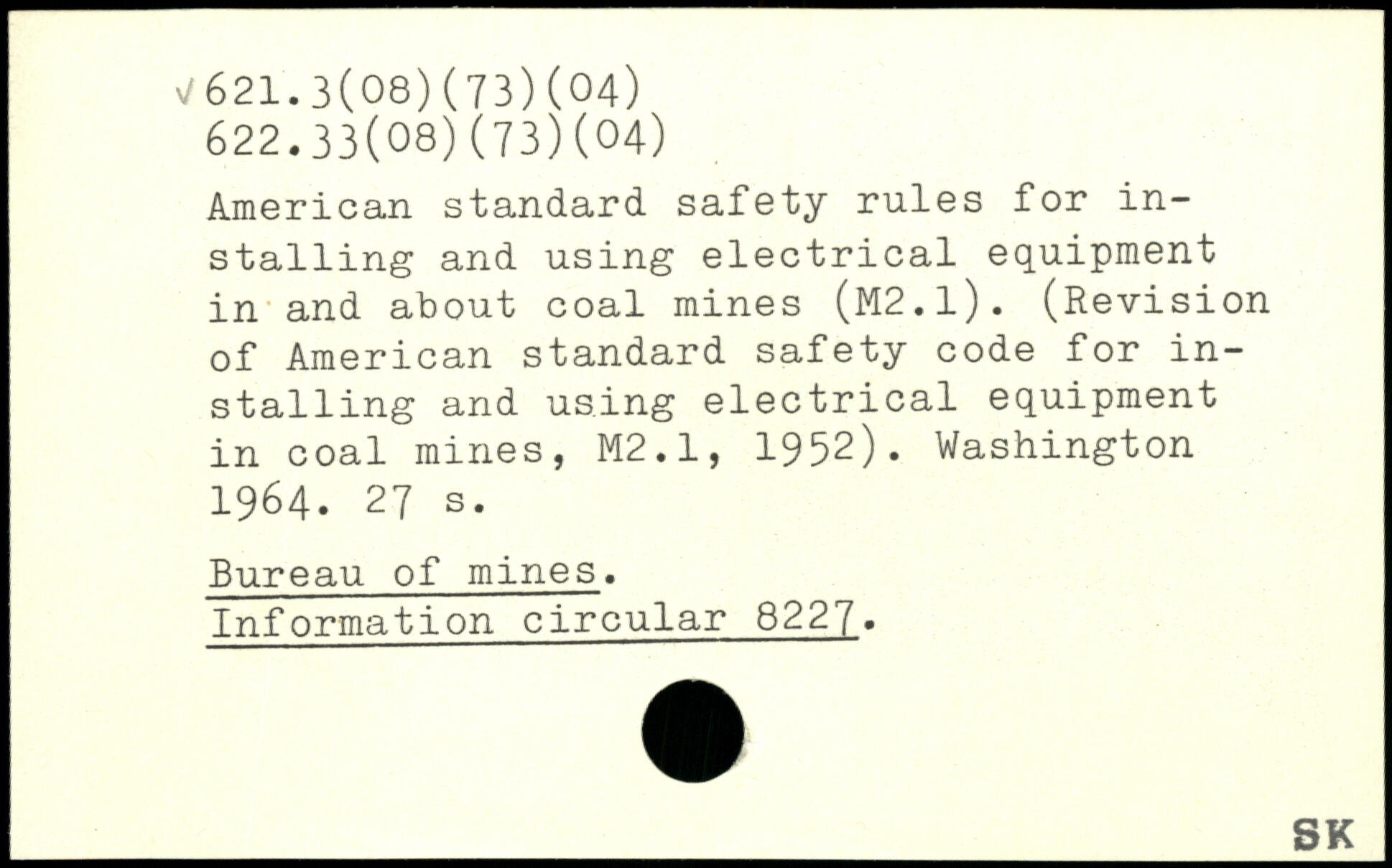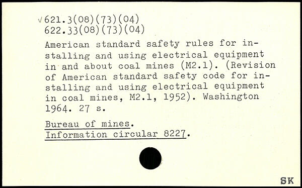 American standard safety rules for installing and using electrical equipment in and about coal mines (M2.l). (Revision of American standard safety code for installing and using electrical equipment in coal mines, M2.1, 1952).