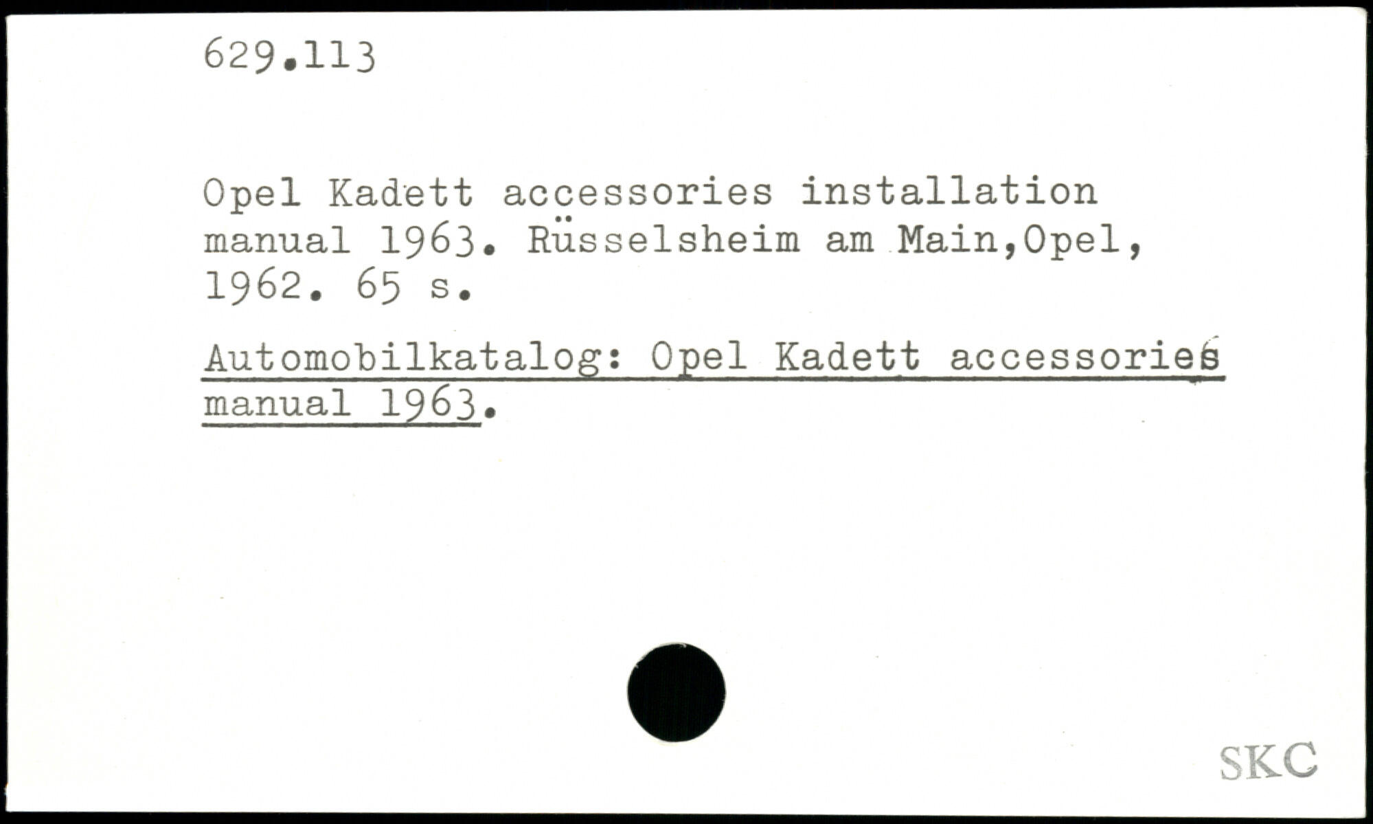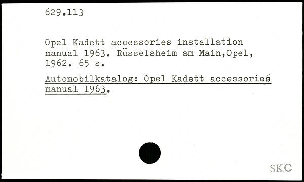 Opel Kadett accessories installation manual 1963.