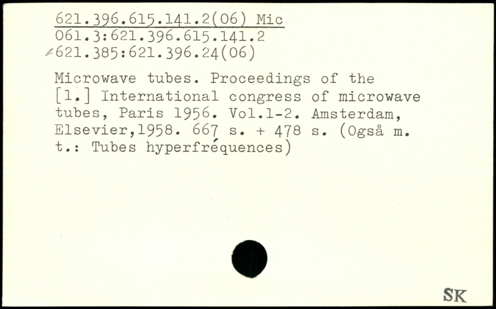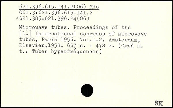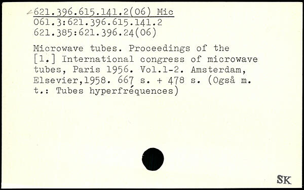 Microwave tubes. Proceedings of the [l.] International congress of microwave tubes