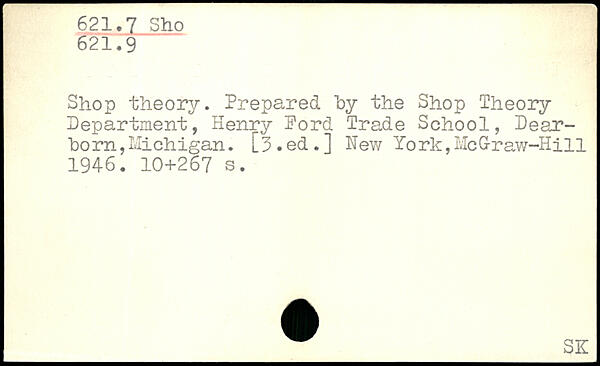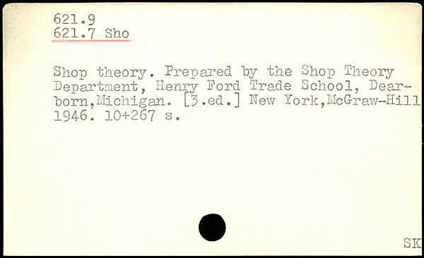 Shop theory. Prepared "by the Shop Theory Department, Henry Ford Trade School, Dearborn ,Michigan. [