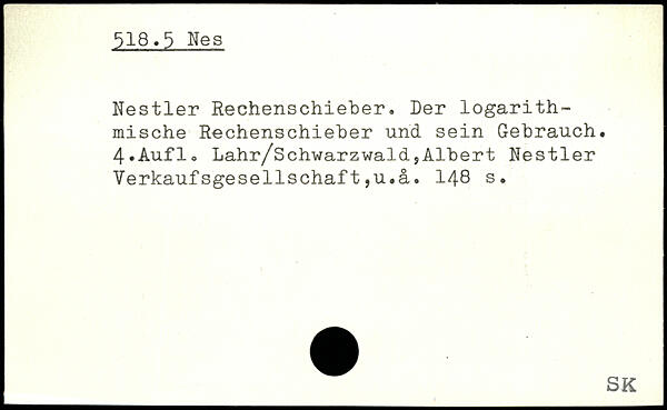 Nestler Rechenschieber. Der logarith-mische Rechenschieber und sein Gebrauch.