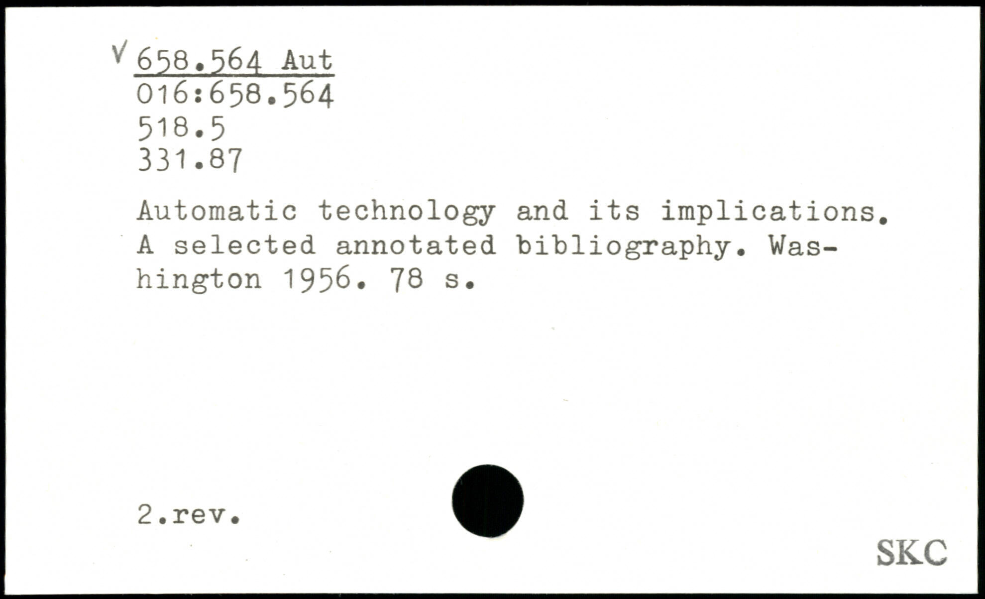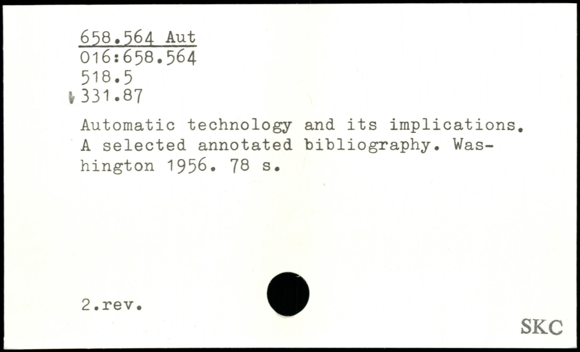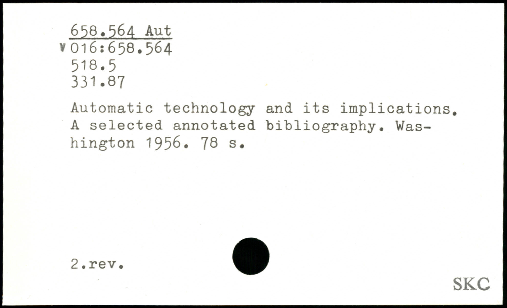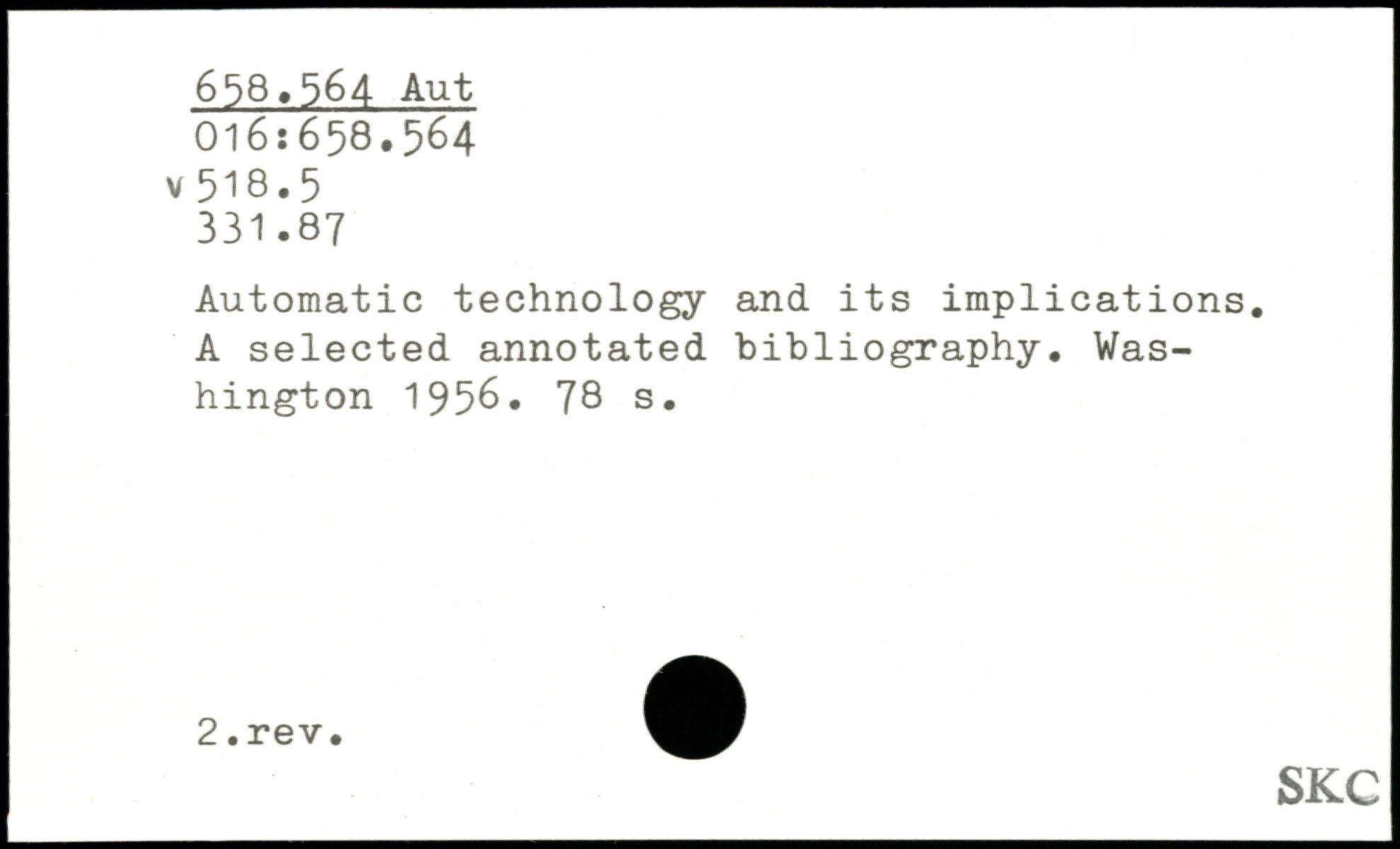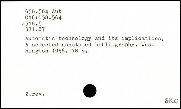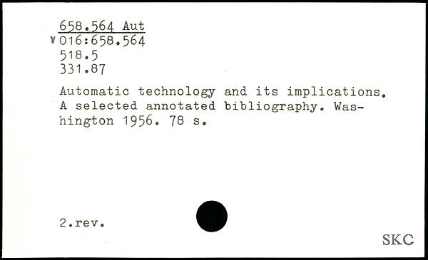 Automatic technology and its implications. A selected annotated bibliography.