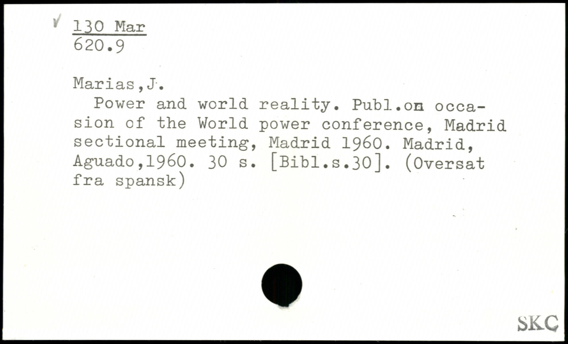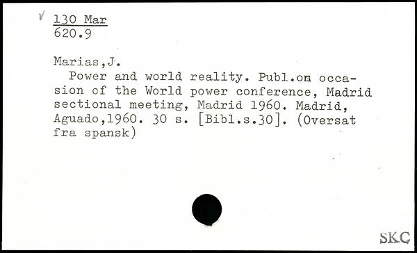 Power and world reality. Publ.on occasion cf the World power conference, Madrid sectional meeting