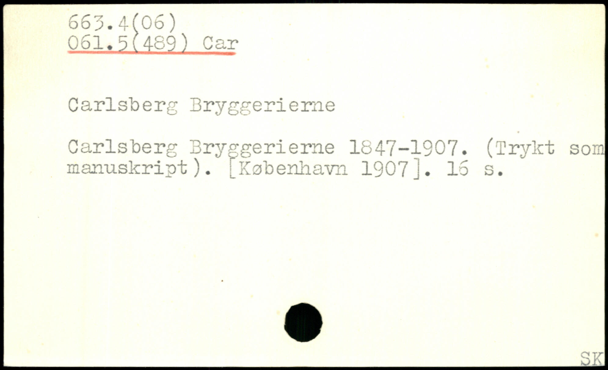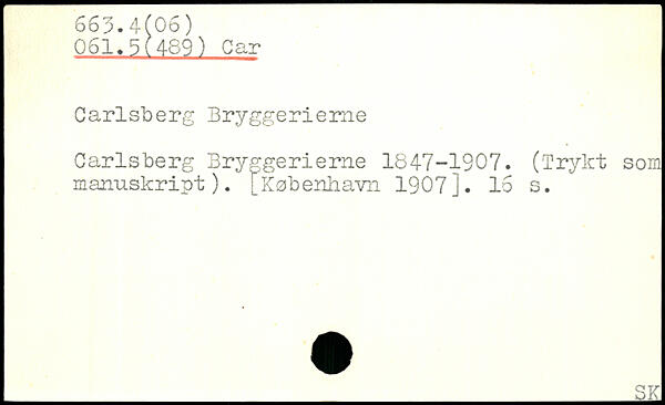 Carlsberg Bryggerieme Carlsberg Bryggerieme 1847-1907. (Trykt som manuskript). [Ksbenhavn 1907].