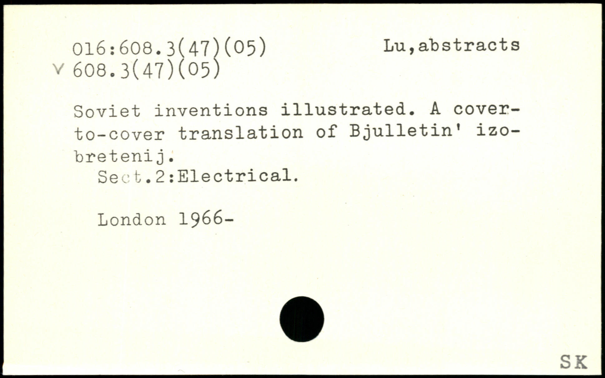 Soviet inventions illustrated. A cover-to-cover translation of Bjulletin. izo- bretenij. Sect.2:Electrical.