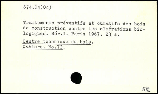 Traitements préventifs et curatifs des bois de construction contre les altérations biologiques. Sér.l.
