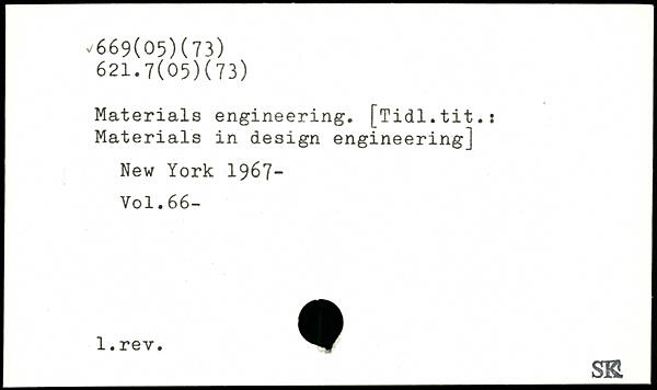 Materials engineering. [Tidl.tit.: Materials in design engineering]